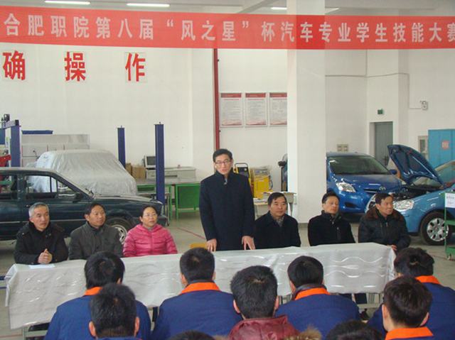 汽车系第八届学生职业技能大赛从本学期开始就筹划组织,采用学生自愿报名参赛,利用实验室开放的时间有序组织训练,最后训练老师、任课教师和班级辅导员三方共同推荐决赛赛选手的方式进行,覆盖面广,参与率高。特别是汽车专业,首次引进校企合作单位——安徽风之星投资控股有限公司参加,对大赛方案提出很多合理化建议,并对大赛进行独家冠名。