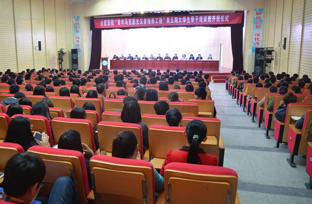 11月26日,我院“青年马克思主义者培养工程”第五期大学生骨干培训班开班仪式在大学生活动中心隆重举行。院党委副书记胡其云出席开班典礼并讲话。合肥市委党校公共管理与法学教研室主任周良金,学院办公室、组织部、宣传部、学工部、招生就业处、思政部等部门负责人,各系(分院)党总支、团总支书记,193名学员及部分学生代表参加了开班典礼。
