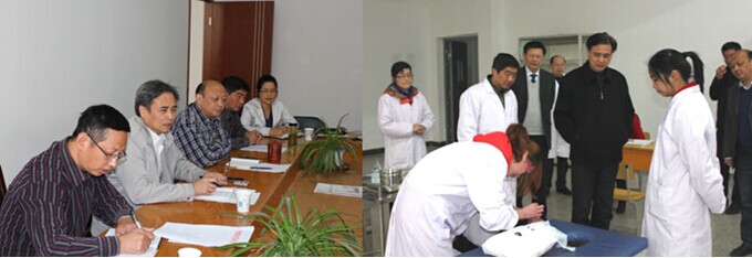学院党委书记丁家康、院长方志斌到医学分院指导、研究部署工作,巡视学生实习前技能考核工作
