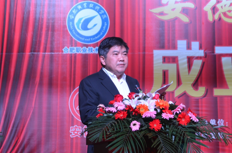 成立揭牌仪式上,院长方志斌代表我院发表了热情洋溢的致辞。他首先代表我院全体教职工对安德利商学院和合肥888集团学院安德利实训基地的正式成立表示衷心的祝贺,对出席本次揭牌仪式的各位领导和嘉宾表示诚挚的感谢和热烈的欢迎。
