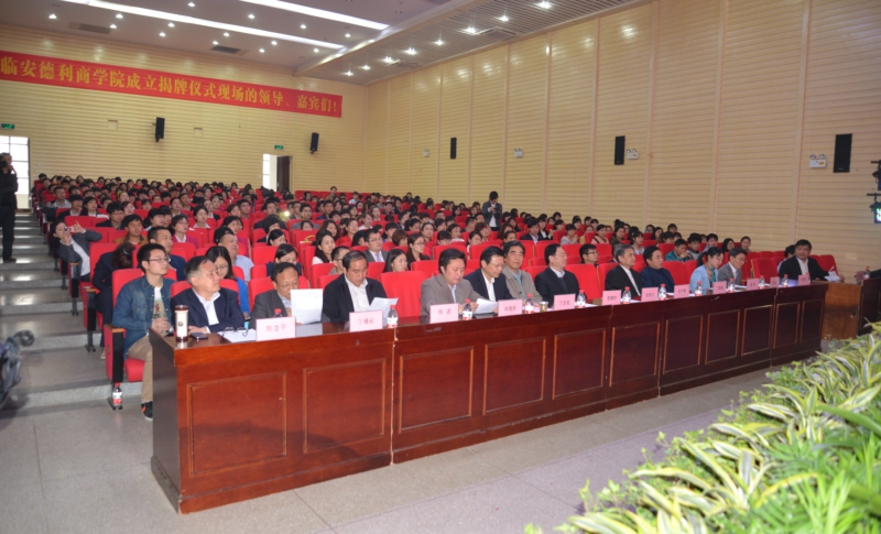 4月11日上午,我院与安徽安德利百货股份有限公司联合举办的安德利商学院在大学生活动中心举行了成立揭牌仪式。出席仪式的领导和嘉宾有原巢湖市政协主席张传才,原巢湖市人大党组书记、主任曹德钧,合肥市行政学院院长张小樵,巢湖市副市长郑连胜,巢湖市人力资源和社会保障局党组书记钱扬政,巢湖市商务局副局长陈昌琴,庐江县商务局副局长陈述,中国科学技术大学管理学院博士生导师、安徽安德利百货股份有限公司独立董事丁栋虹,首都经济贸易大学工商管理学院教授、安徽安德利百货股份有限公司顾问陈立平,国行课程“全赢人生”创始人、安徽安德利百货股份有限公司顾问谷跃东,北京影响力企业管理有限公司董事副总裁文海炜,安徽安德利百货股份有限公司董事长陈学高,院党委书记丁家康,院长方志斌。