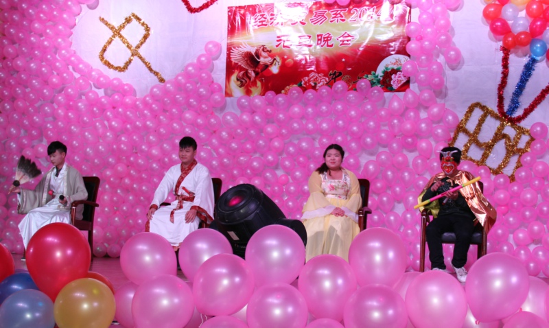 金蛇狂舞辞旧岁,骏马奔腾迎新年。12月27日晚7时,经贸系“放飞梦想•从心开始”2014年元旦文艺晚会在大学生活动中心隆重举行。院党委书记丁家康、院长方志斌、党委副书记胡其云、副院长孙兴林亲临现场欣赏了晚会,出席晚会的还有院团委负责人、经贸系师生代表,大家带着对新年的美好期盼欢聚一堂,共度良宵。