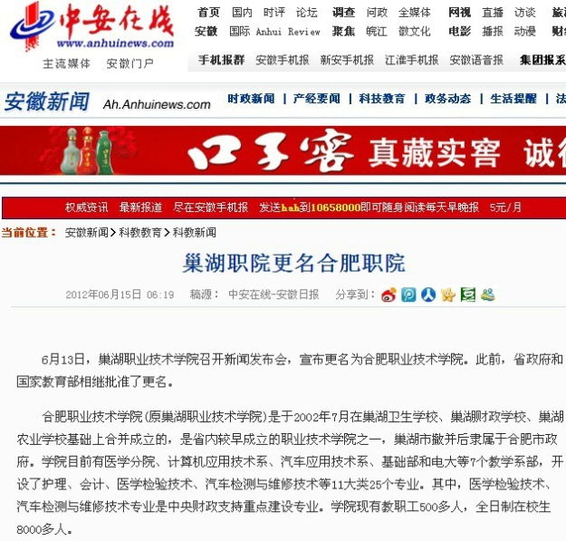 我院的教育教学、招生就业工作引起了媒体的全方位关注。其中,合肥电视台报道了2012级新生军训、第一届运动会、计算机系学生的艺术设计作品展,安徽教育网报道了大学生创业大赛、大学生就业孵化中心、光明日报下属的光明网报道了我院新生入学等等。我院大学生思想政治教育的成果同样引起了媒体的特别关注,我院经贸系11级建筑装饰工程技术专业的同学们捐款资助长丰县贫困女童陈月霞的事迹引起了包括安徽教育网、安徽广播网、安徽法制网、中安在线、合肥在线等媒体的广泛关注,其中省内知名媒体《新安晚报》用了半个版面的篇幅报道了我院学生发起爱心捐款的详细情况。