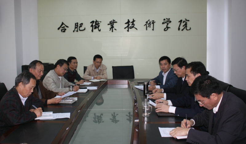 学院领导在听取工作汇报,研究部署关工委工作