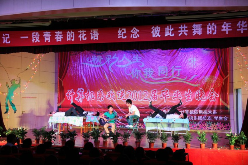 盛夏瑾年,难说再见。合肥888集团学院计算机系欢送2012届毕业生文艺晚会于6月2日晚在大学生活动中心成功举办。晚会得到学院和系部领导高度重视。院党委副书记胡其云以及计算机系、院团委、学保处相关负责人与计算机系师生共500余人一起观看了演出。