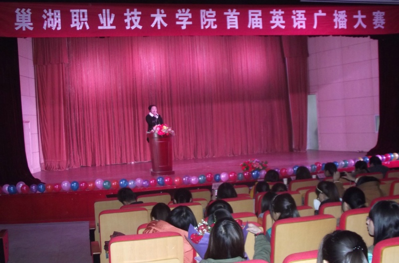 为营造良好的英语学习氛围,展现和提高我院学生英语口语表达水平,同时为了给广大英语和播音爱好者搭建一个学习和交流的平台,12月7日下午 ,我院首届英语广播大赛决赛在大学生活动中心如期举办。团委副书记佘海月在赛前为比赛致辞。
