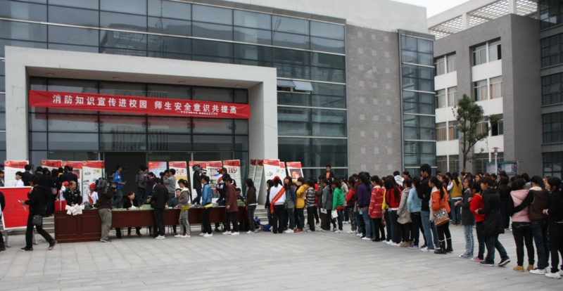 201111 9日下午,我院与巢湖开发区消防大队联合举办的以“全民消防、生命至上”为主题的消防日宣传活动在大学生活动中心举行。活动紧紧围绕校园防火安全为重点,以构建校园防火“四个能力”建设为突破口,加强我院消防青年志愿者队伍建设为抓手,提高全院师生消防安全意识为目的。