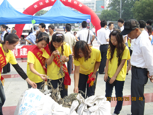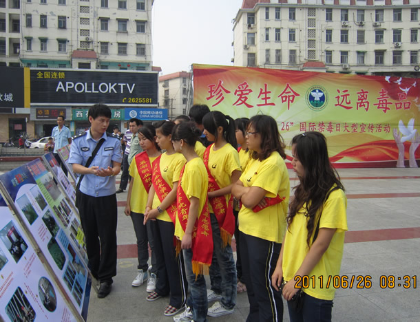 我院10余名青年志愿者积极参加了此次宣传活动。志愿者们通过宣传版面、悬挂横幅、海报、展板、禁毒专刊等形式向市民广泛宣传,讲解有关毒品预防的基本知识,并为市民解答关于禁毒方面的相关知识,倡导市民远离毒品、珍爱生命、共创和谐。