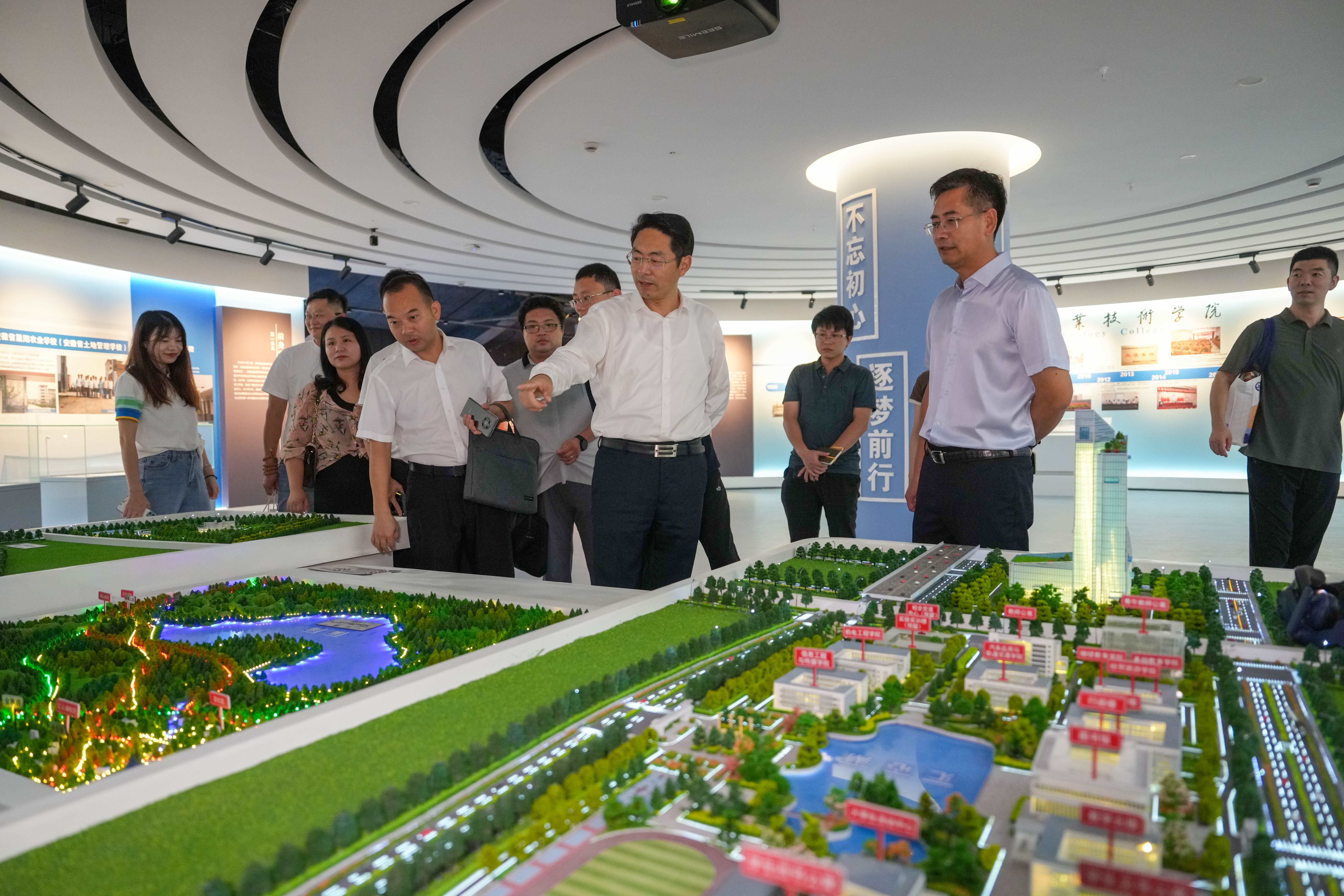 会前,王杰才陪同来宾一行参观了我校“职业教育与合职发展”展览馆(校史馆),双方在参观过程中对职业教育发展也做了讨论交流。