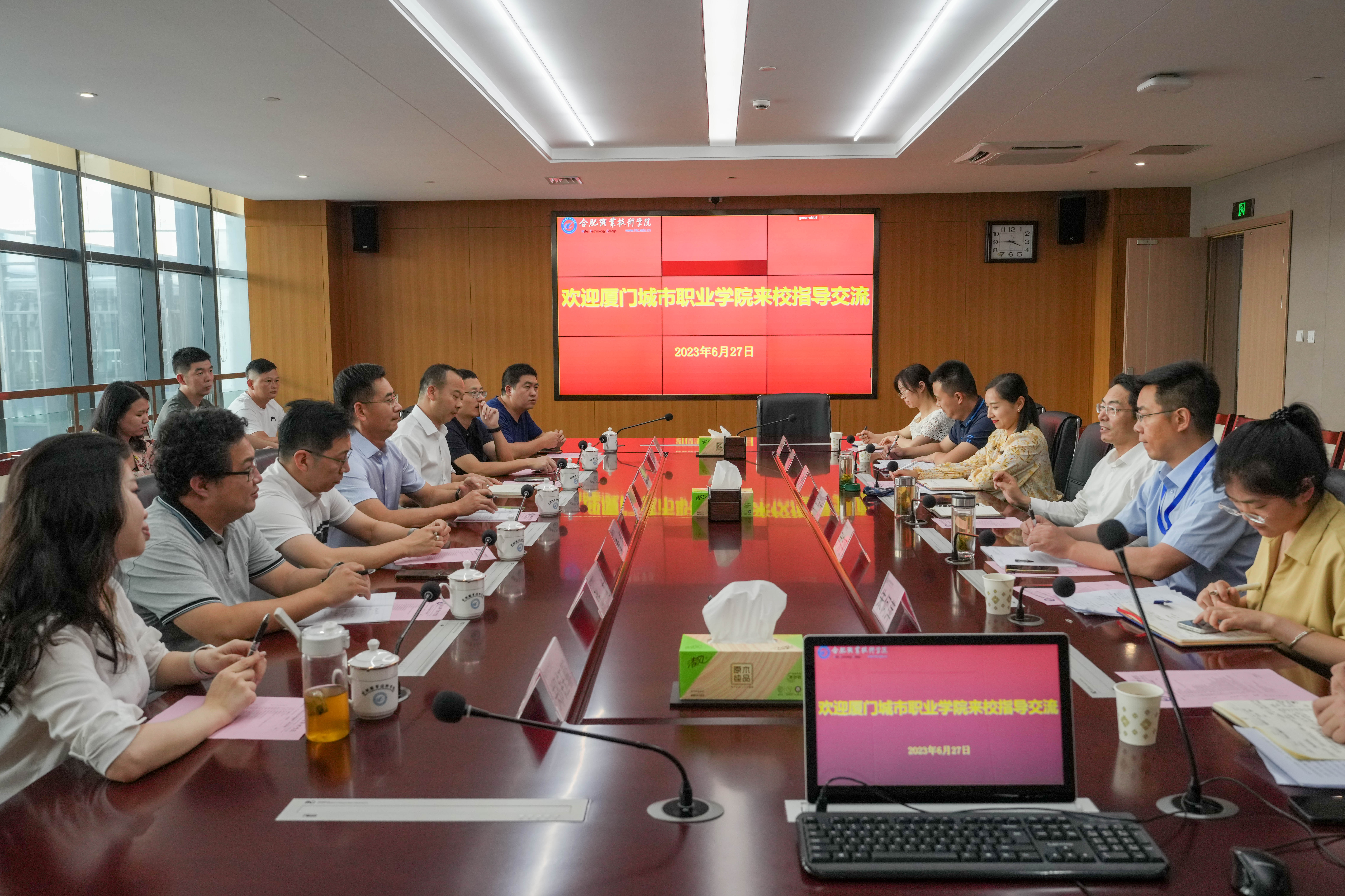 6月27日下午,厦门城市职业学院党委副书记王育培一行来校考察交流。校党委书记王杰才热情接待了来宾一行,并主持召开交流座谈会。