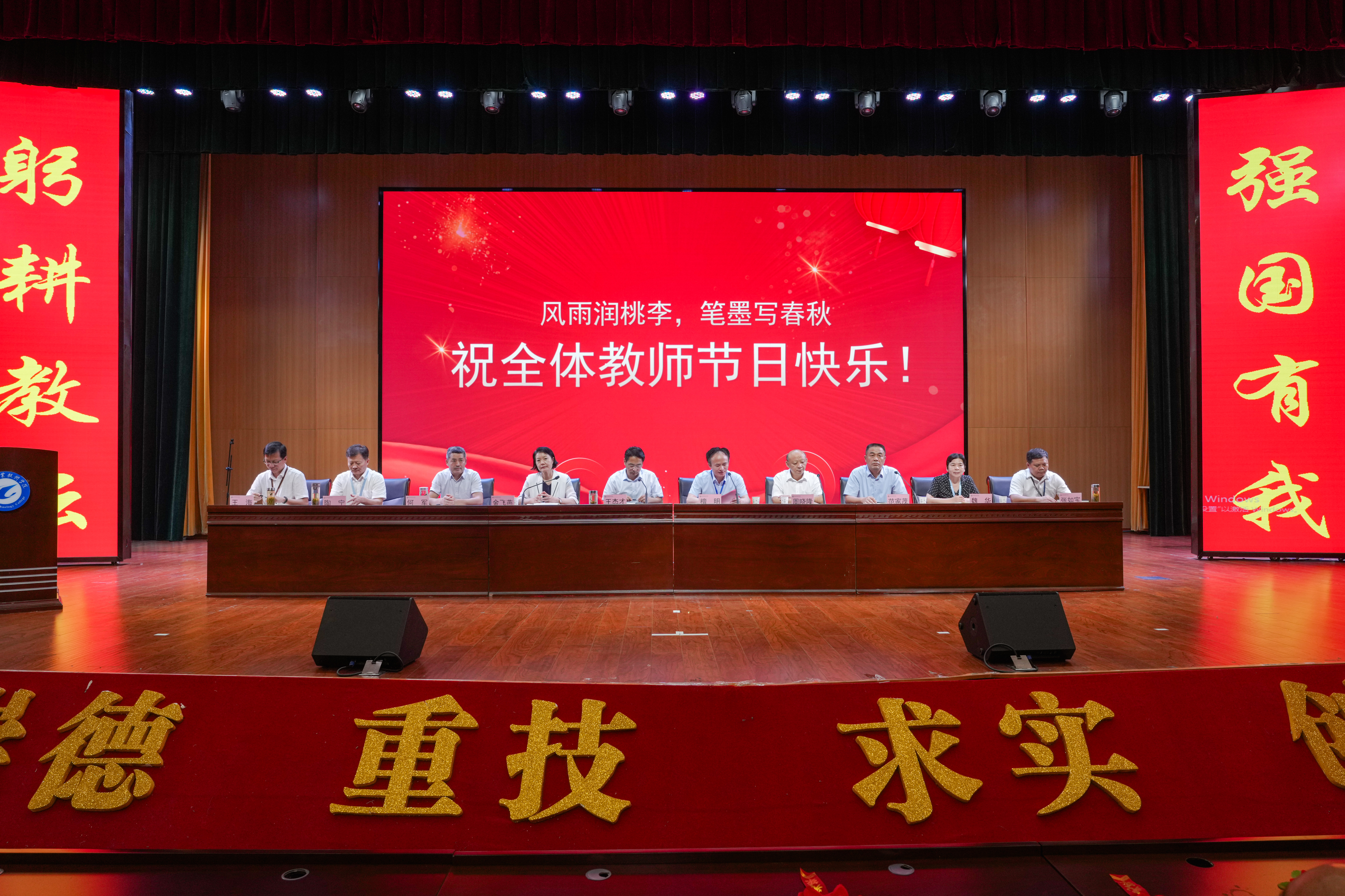 王杰才在讲话中指出,一年来学校各项事业取得了显著成绩,广大教职员工无私奉献,“双高校”和产业学院建设取得重要成果,学校教育事业繁荣发展。在教师节来临之际代表学校党委、行政,向受表彰的教师和集体致以诚挚的祝贺,向辛勤耕耘在学校教育事业一线的全体教职工和为学校建设发展做出卓越贡献的离退休老同志致以节日的慰问和崇高的敬意。