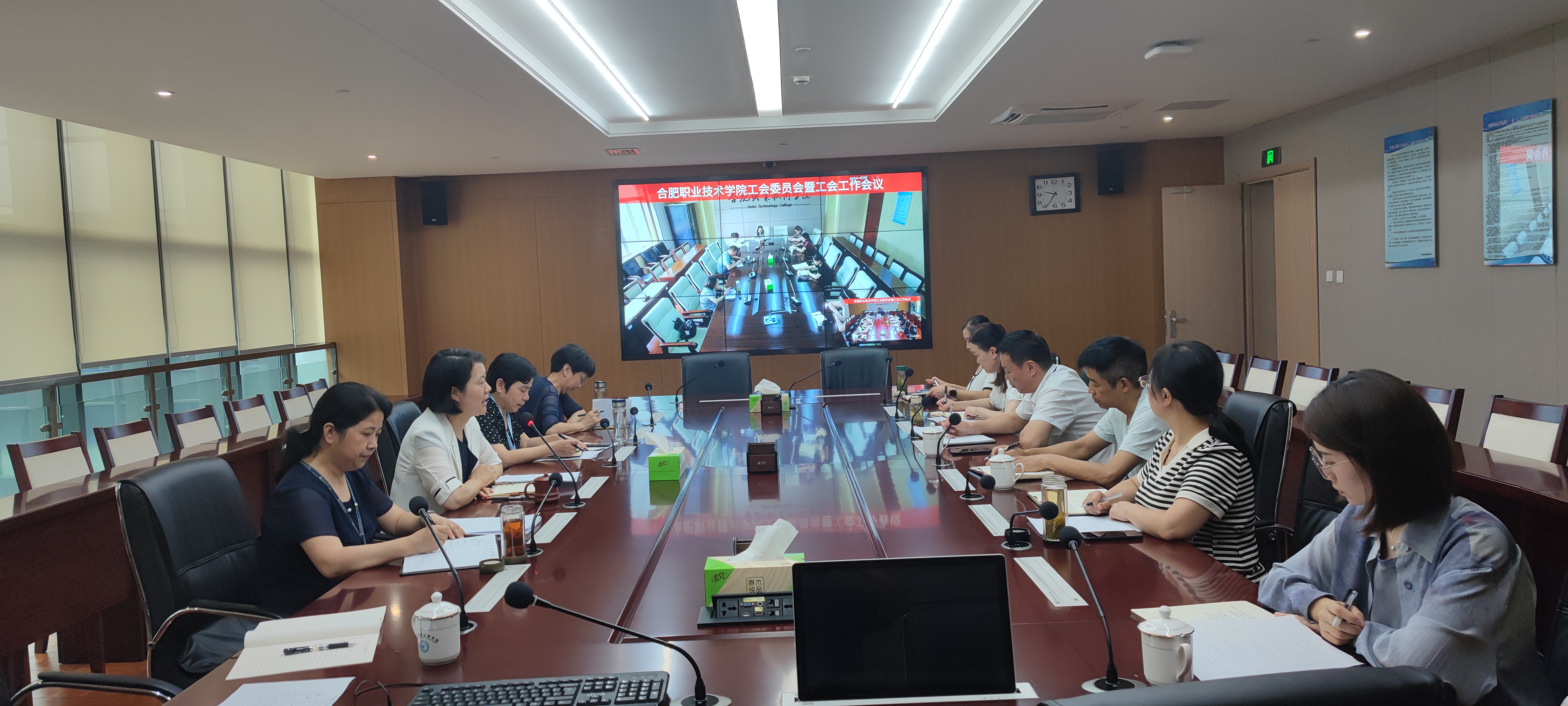 9月6日上午,我校在汇心湖627会议室和鼓山行政楼会议室同频召开了五届一次委员会暨工会工作会议,党委副书记金飞燕出席,党委委员、宣传部长、工会主席魏华,工会委员、分工会主席参加了会议,会议由魏华主持。
