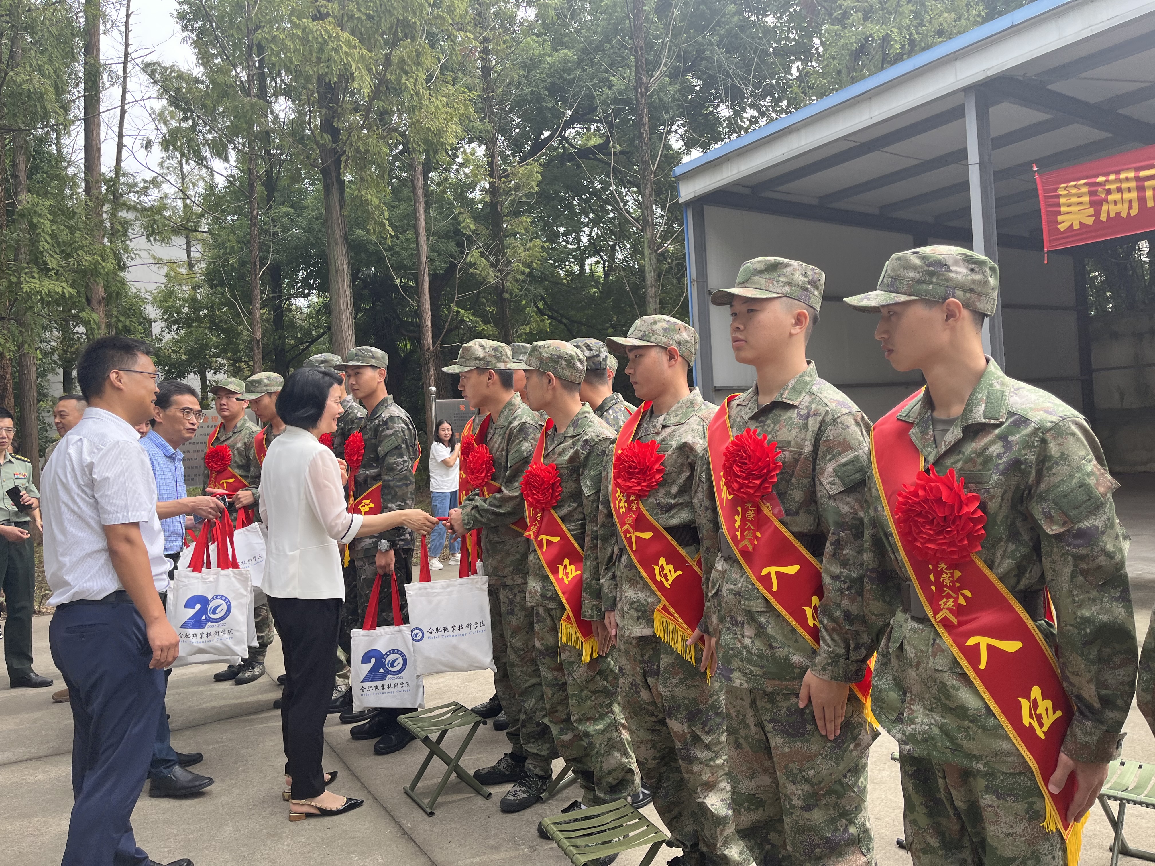 9月15日上午,我校党委副书记、征兵工作站(兵役服务站)站长金飞燕,学生处处长、征兵工作站(兵役服务站)副站长王克勇,鼓山校区管委会主任谭连生,学生处副处长宋春华等一行人前往巢湖市新兵役前集训基地为2023年秋季入伍毕业生举行欢送会,巢湖市人武部部长孙健、政委余洲等人出席此次活动,各入伍新兵家人也参加了欢送会,本次欢送会由王克勇主持。