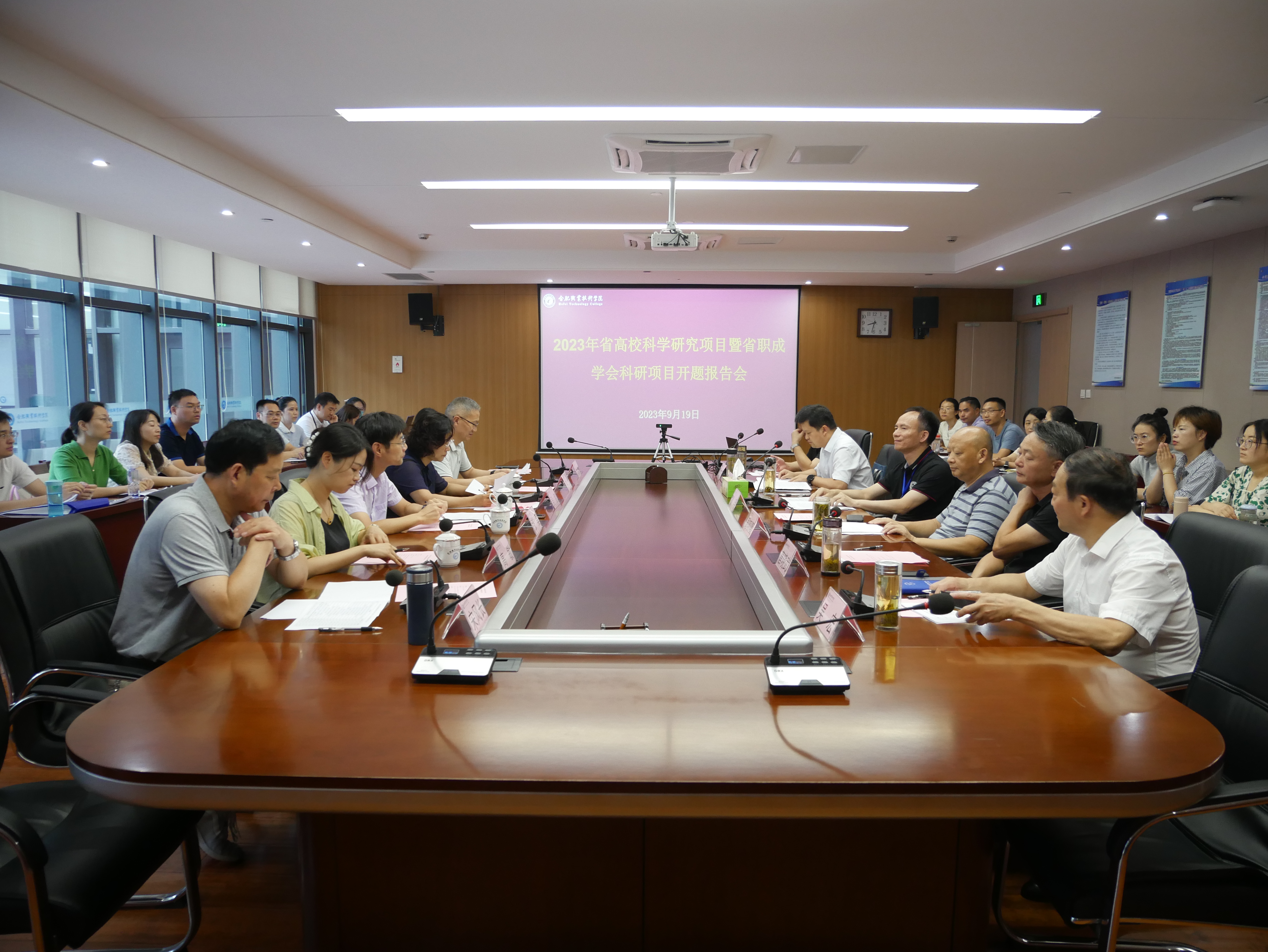 为进一步推进学校科研项目研究工作,提升教师科研能力和水平,9月19日,我校在汇心湖校区举行2023年度省高校科研项目暨省职成协会科研项目开题报告会。校党委副书记、校长檀明教授,党委委员、副校长周晓隆教授,学术委员会主任委员唐晓武教授,校内外专家,财务处、科技处负责人及全体项目主持人等60余人参加了报告会。报告会由唐晓武主持。
