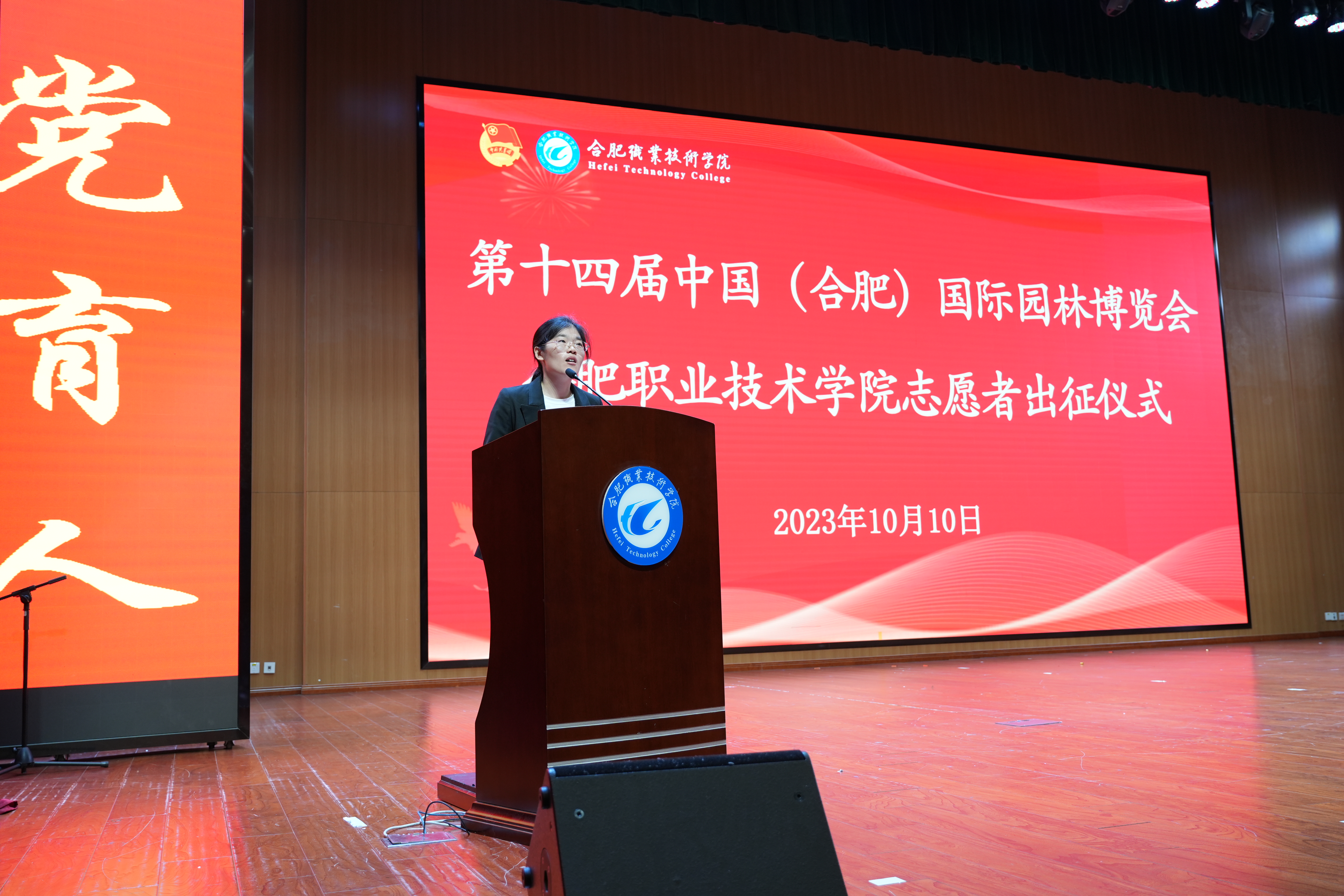 10月10日,我校在汇心湖校区大学生活动中心举行第十四届中国(合肥)国际园林博览会志愿者出征仪式。校团委老师和全体志愿者参加本次出征仪式。