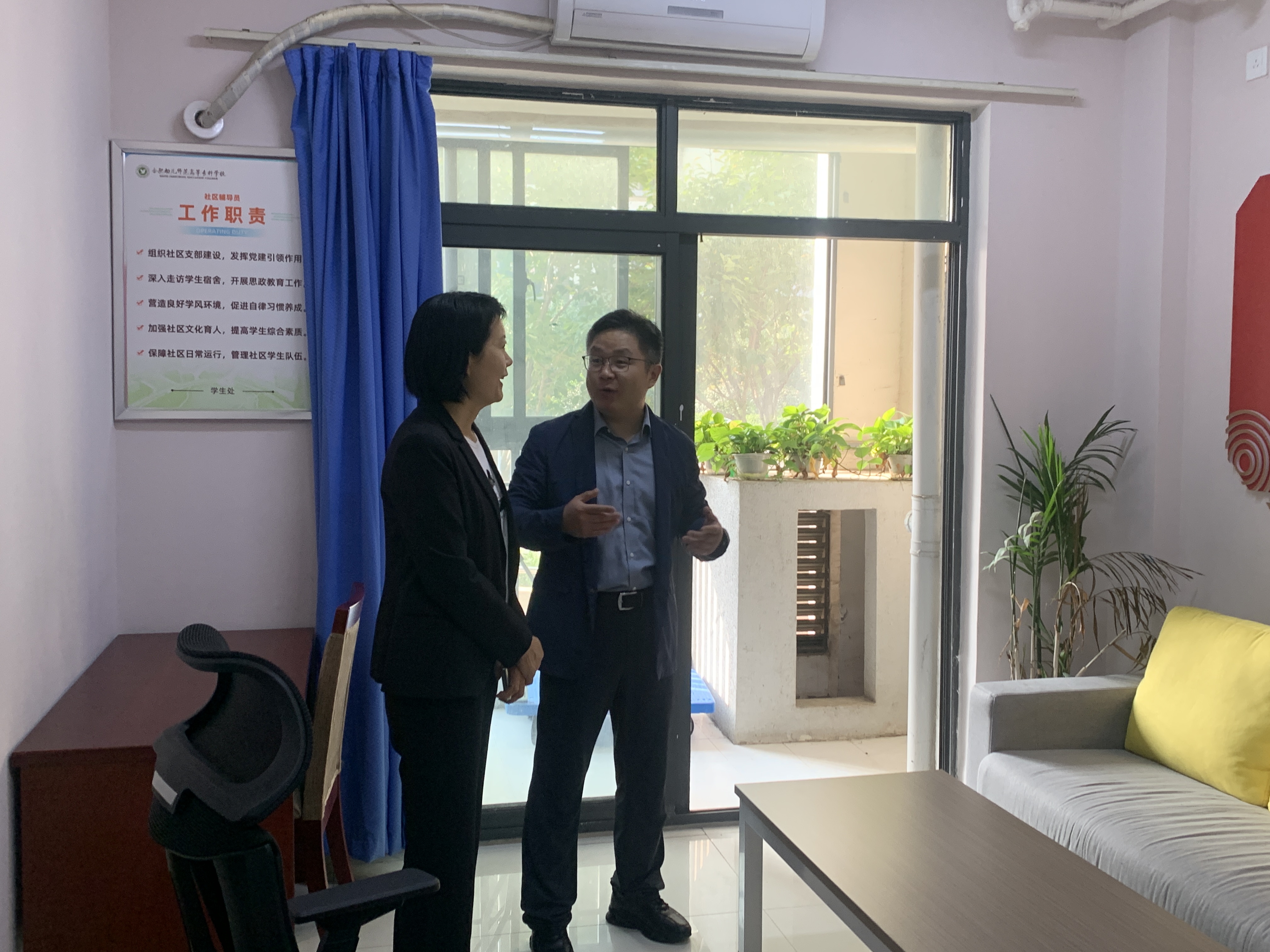10月19日上午,金飞燕一行赴合肥幼儿师范高等专科学校调研。合肥幼儿师范高等专科学校党委委员、副校长张海涛,学生处副处长(主持工作)郭琦等领导参与接待。