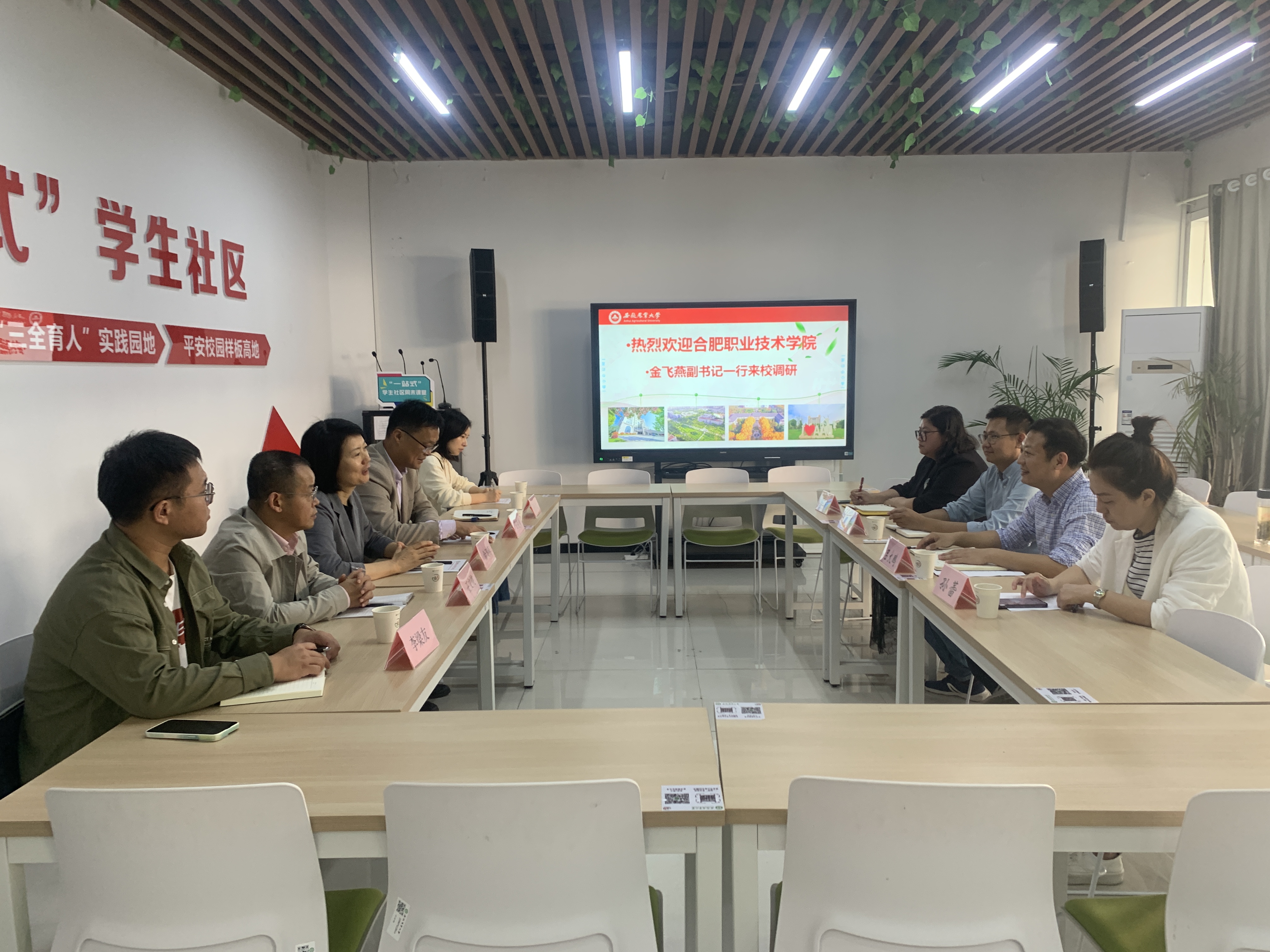 金飞燕感谢合肥幼儿师范高等专科学校对调研工作的支持,并对合肥幼儿师范高等专科学校在人才培养、“一站式”学生社区建设及心理健康教育等方面开展的工作表示赞赏。她表示,同为合肥市市属高职院校,希望双方能通过此次调研加深了解与沟通,在“一站式”学生社区建设、心理健康教育工作等方面密切合作、实现共赢。