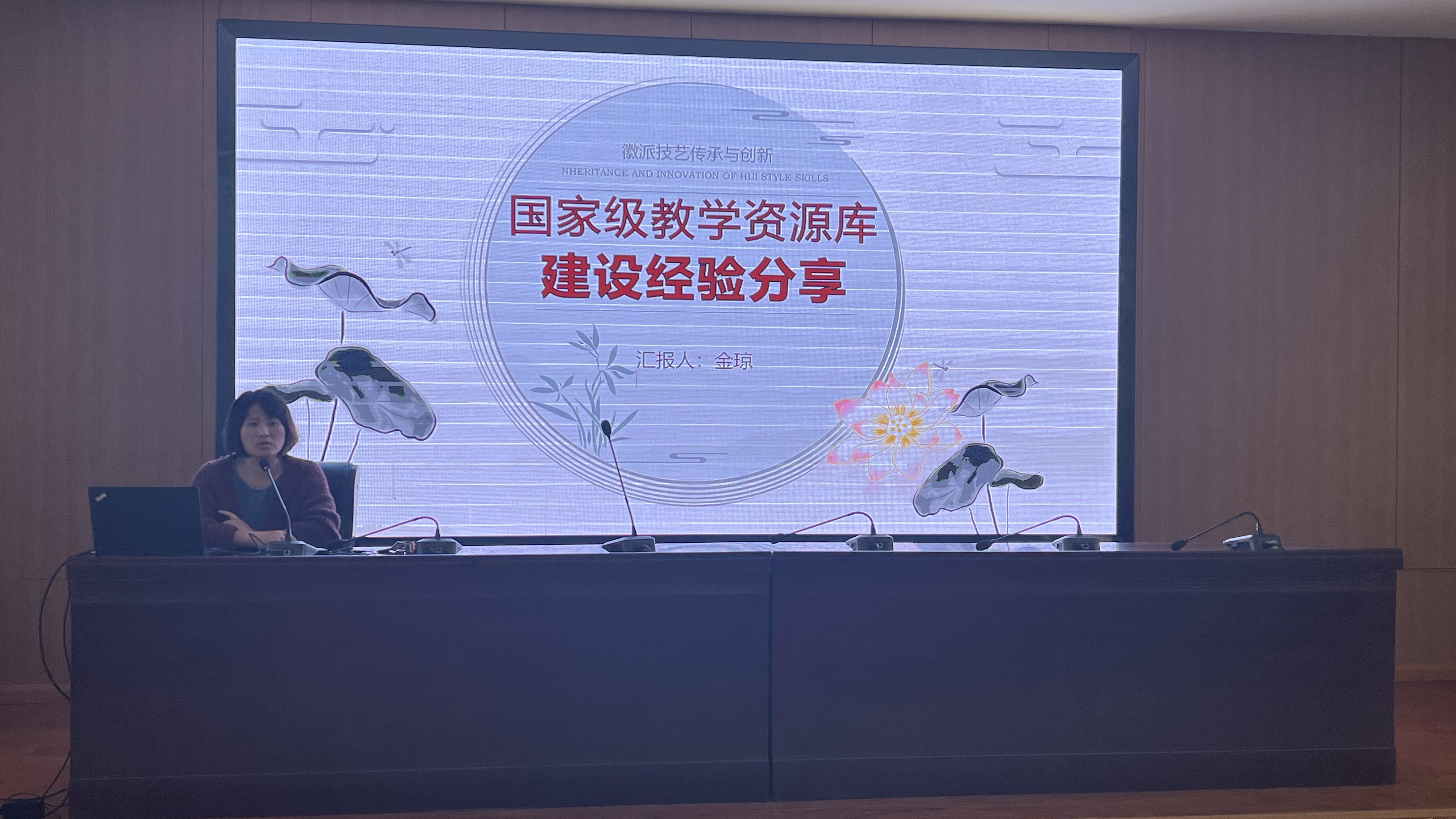 培训会上,我校数字媒体教研室主任金琼老师以徽派技艺传承与创新库的申报与建设为例,从相关政策与法规、项目建设背景、建设内容及范围、课程的应用与推广及相关经费的注意事项等方面进行了经验分享。