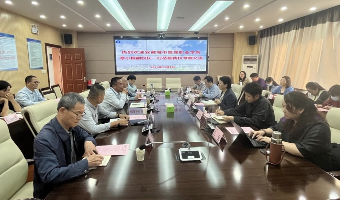 11月2日下午,安徽城市管理职业学院党委委员、副校长章小槟,该校城市建设学院院长邬守军等一行13人来我校调研交流,校党委委员、副校长范家茂接待并参与调研。交流会在鼓山校区行政楼三楼会议室举行,由建筑工程学院副院长(主持工作)魏永恒主持,该院副院长邓勋和相关专业课教师参加会议。