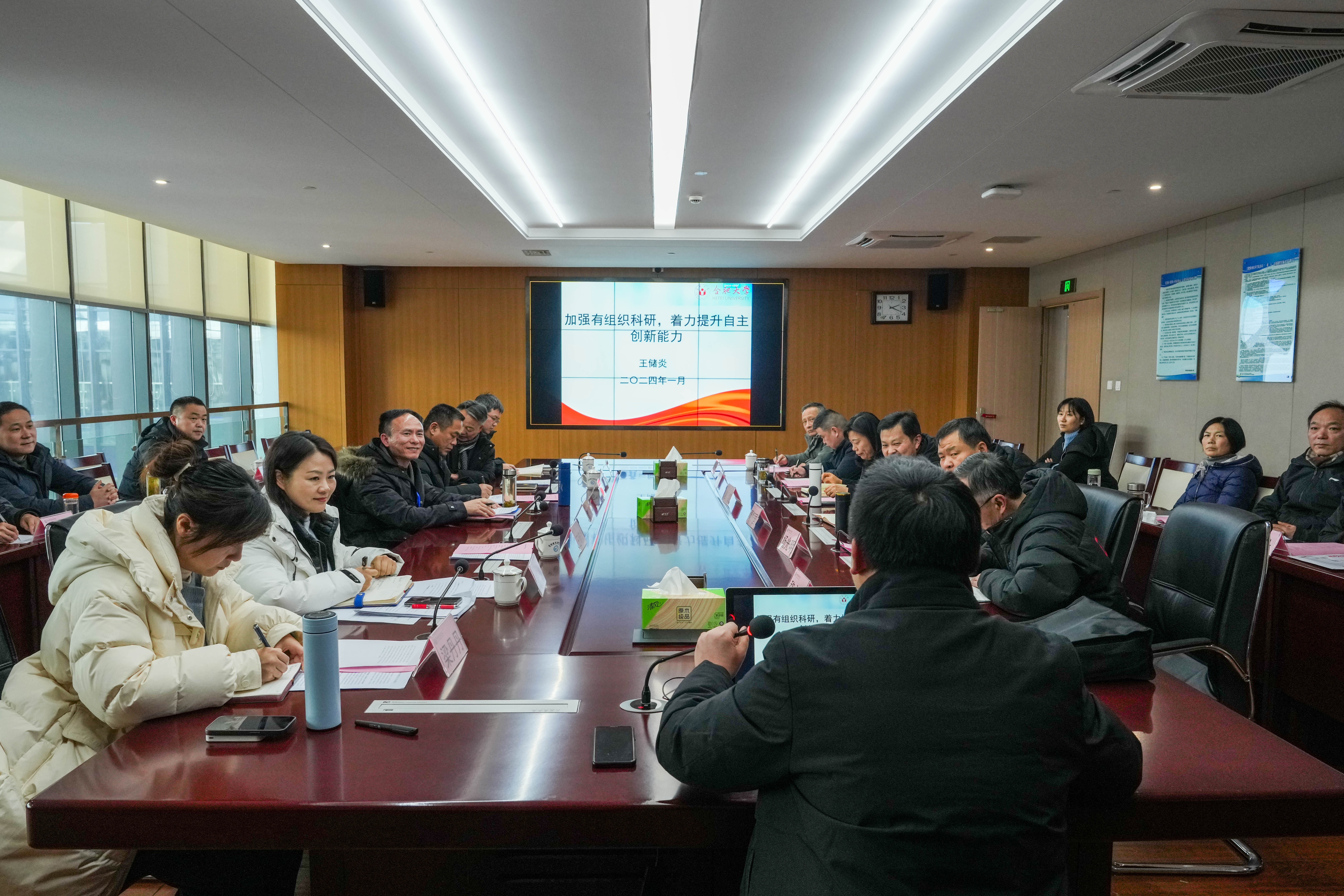 会上,邀请了合肥大学科研处处长王储炎教授进行了“加强有组织科研,着力提升自主创新能力”的专题报告。报告详细阐述了合肥大学的科研现状、新时代国家的科研政策、应用型大学当前科研工作的思路、科研管理模式及科研激励措施等,这对我校如何加强有组织科研、提升自主创新能力提供了重要帮助。