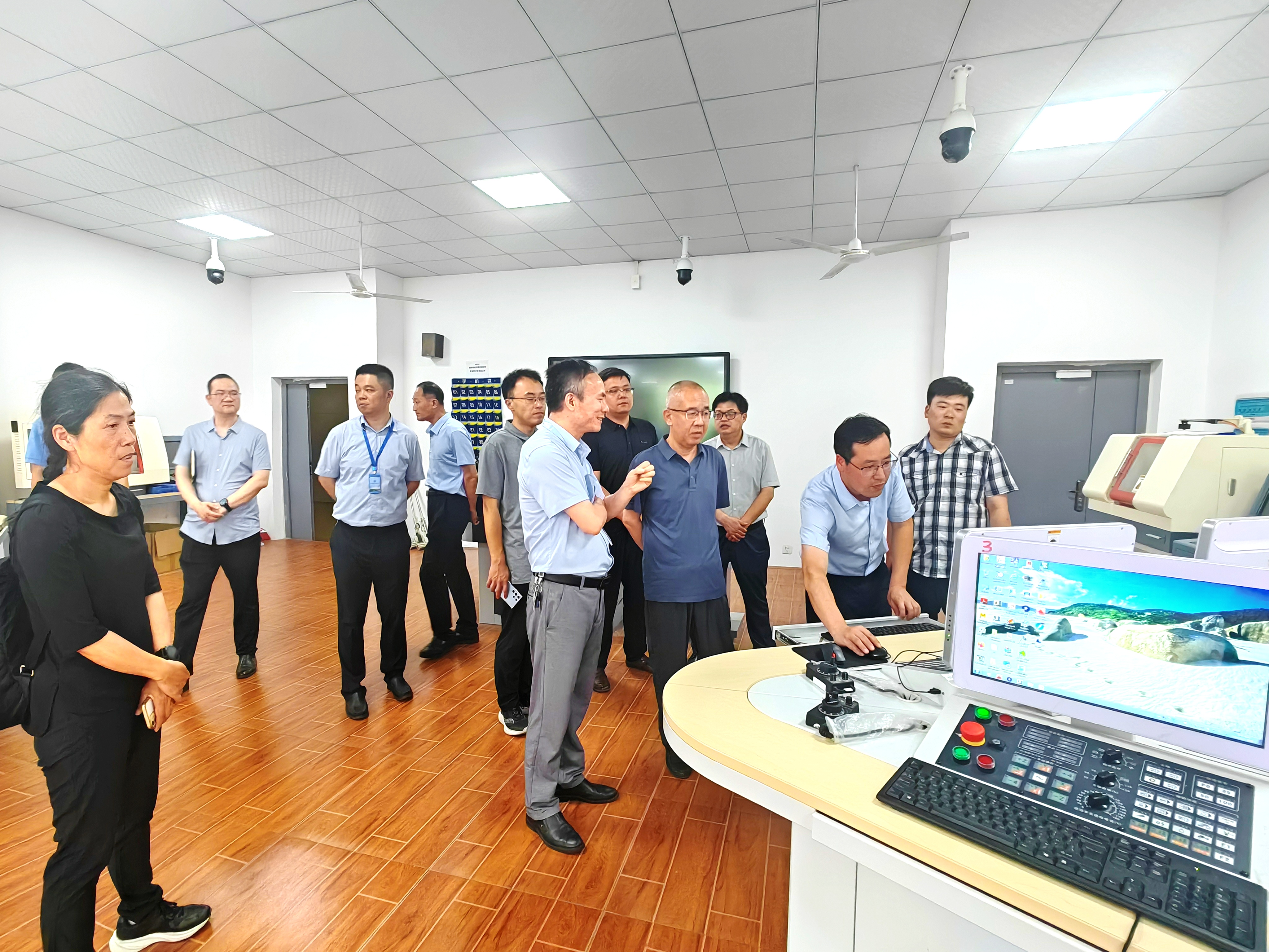 在校长檀明的带领下,调研组一行深入参观了信息工程与传媒学院的新一代信息技术产教融合实训基地,机电工程学院的工业软件综合仿真实训室和轨道交通学院的车辆虚拟仿真实训室。