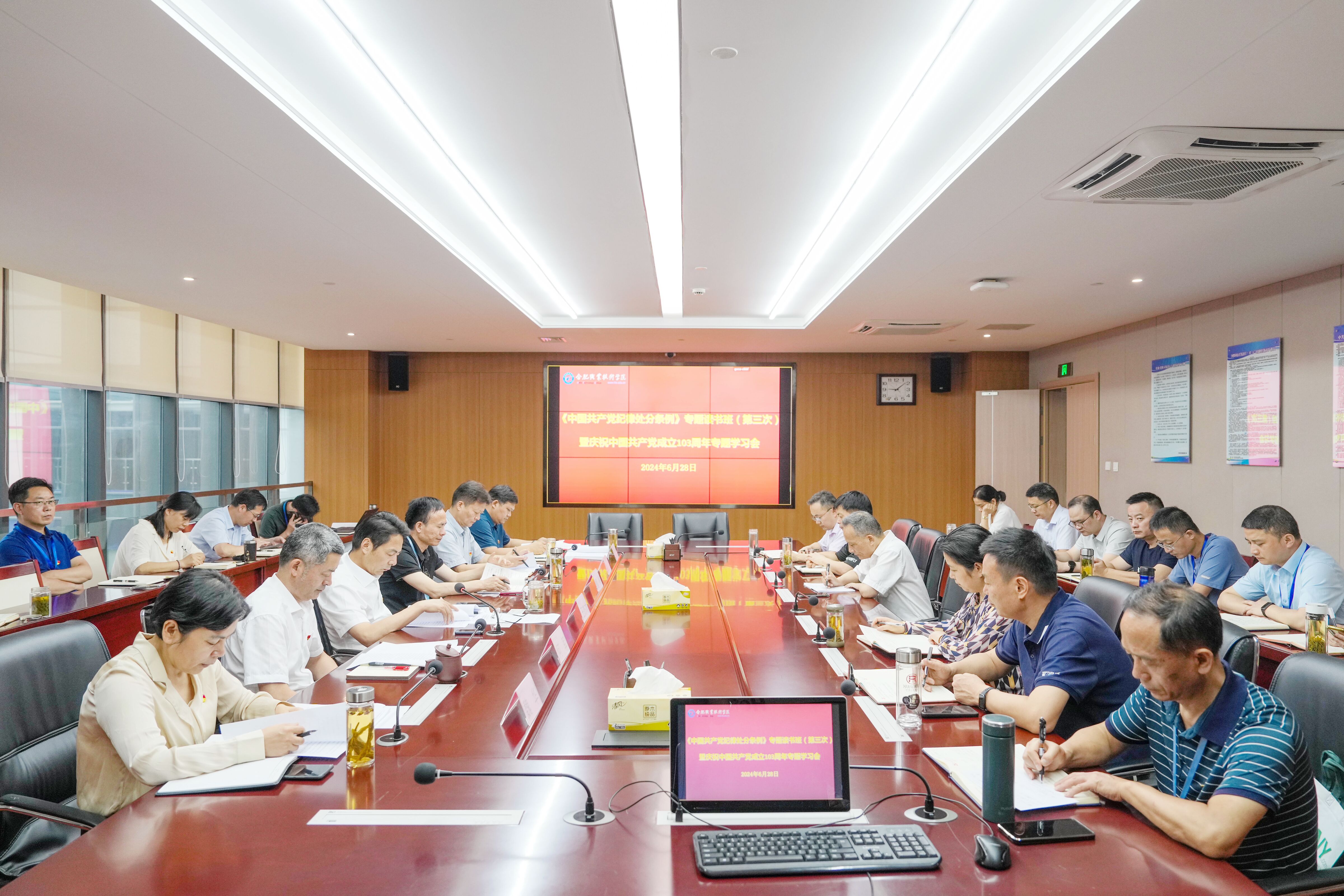 6月28日,我校召开《中国共产党纪律处分条例》专题读书班(第三次)暨庆祝中国共产党成立103周年专题学习会。党委领导班子全体成员、鼓山校区党工委、直属分党委、各部门主要负责人、各二级学院党政主要负责人、县处级领导干部、离退休党员代表及党纪学习教育工作领导小组办公室成员参加会议,会议由党委书记王杰才主持。