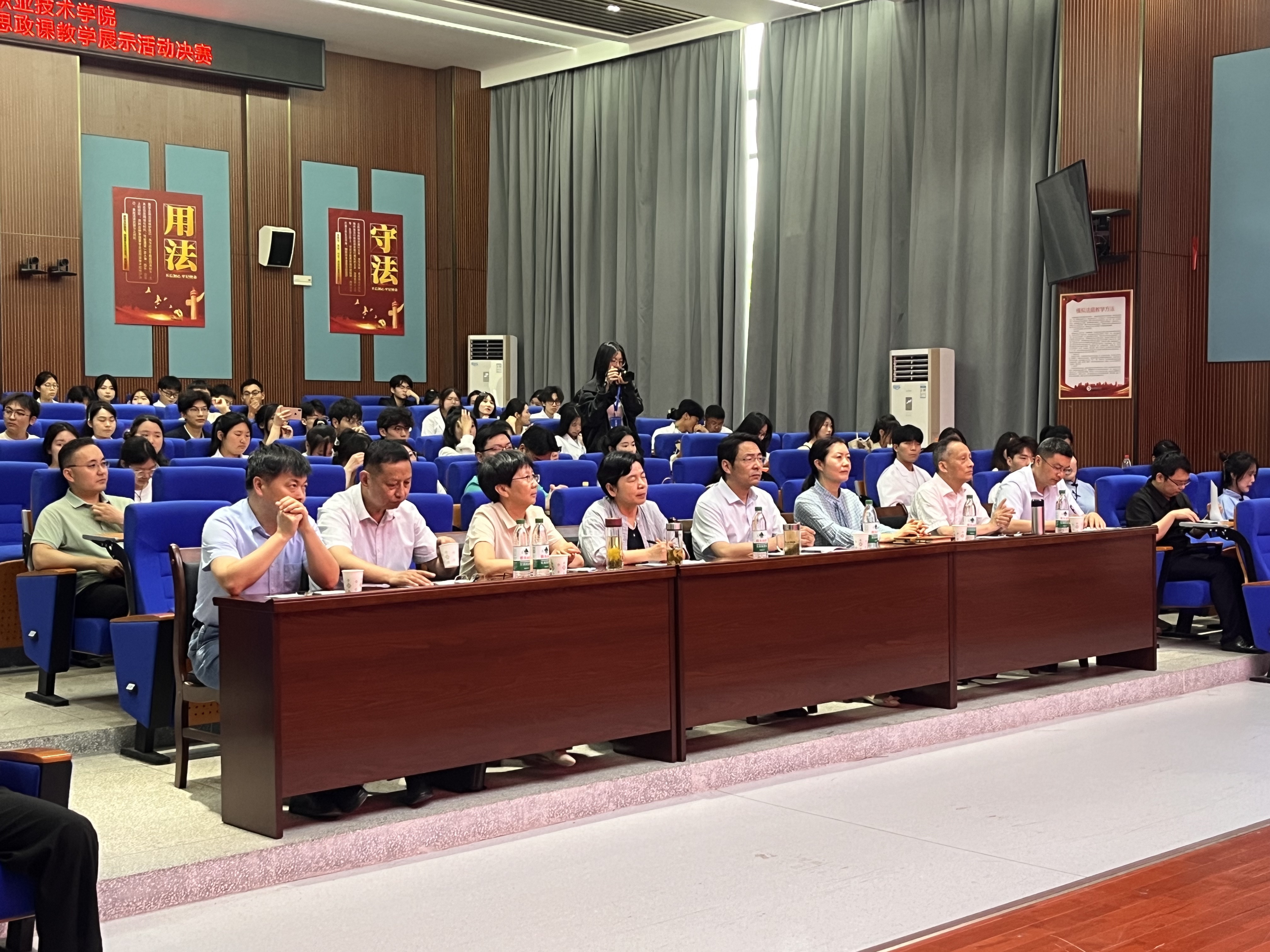 为深入学习贯彻党的二十大精神,推动党史学习教育常态化长效化,助力思想政治教育提质增效,真正把青年学生培养为走在时代前列的奋进者、开拓者,6月26日下午,由马克思主义学院主办的我校第三届大学生讲思政课教学展示活动在汇心湖校区教学北楼二楼模拟法庭顺利举行。此次活动邀请了我校相关部门的领导、专家担任比赛的评委。校党委书记王杰才,党委副书记金飞燕来到比赛现场全程观摩展示活动,马克思主义学院党政主要负责人、全体思政课教师和部分学生代表全程观看了此次比赛。