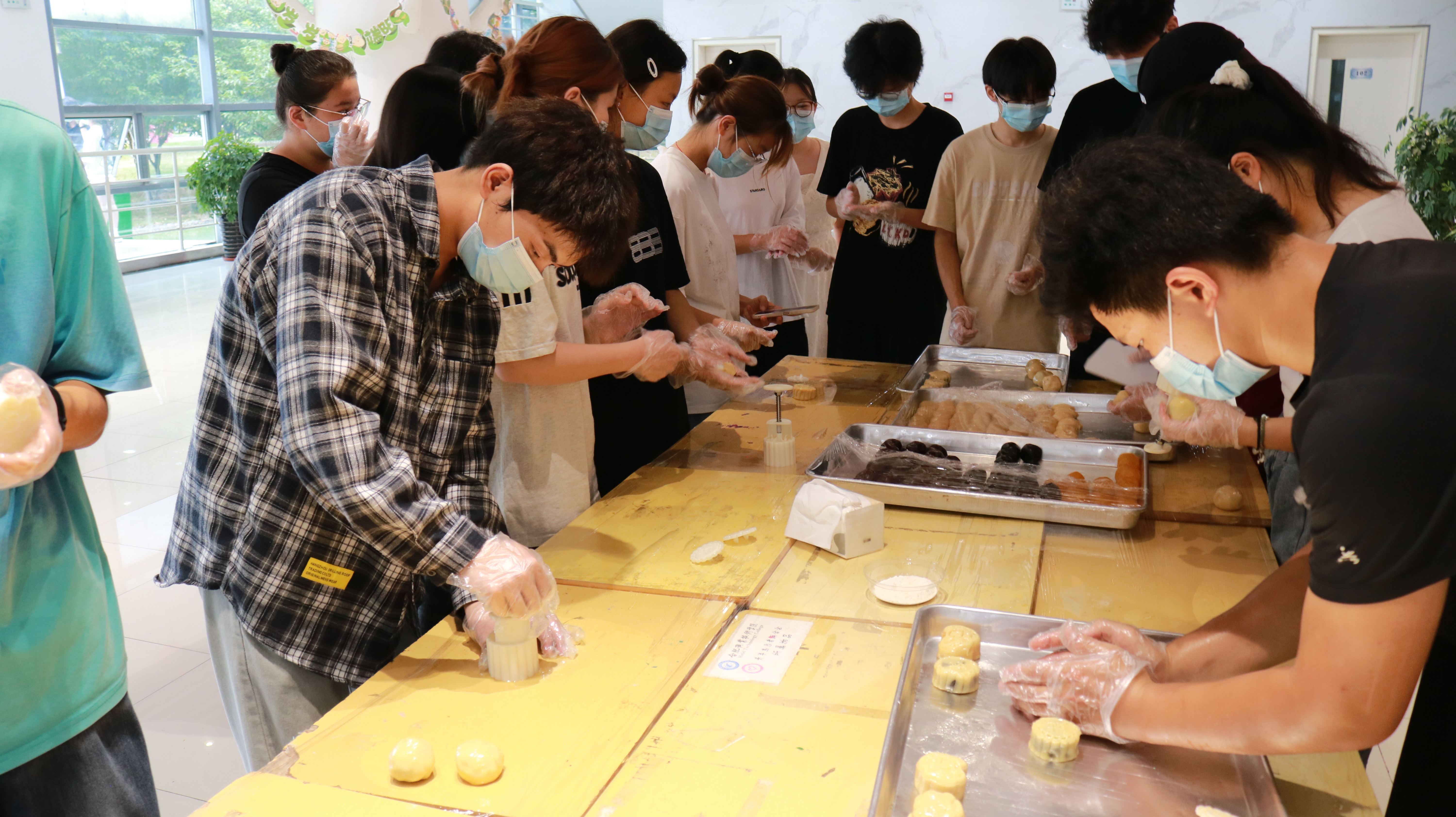 活动现场,学长学姐们化身“月饼大师”,亲自动手制作精美的月饼。他们精心挑选原料,从和面、包馅到成型、烘烤,每一步都倾注了满满的心意与祝福。