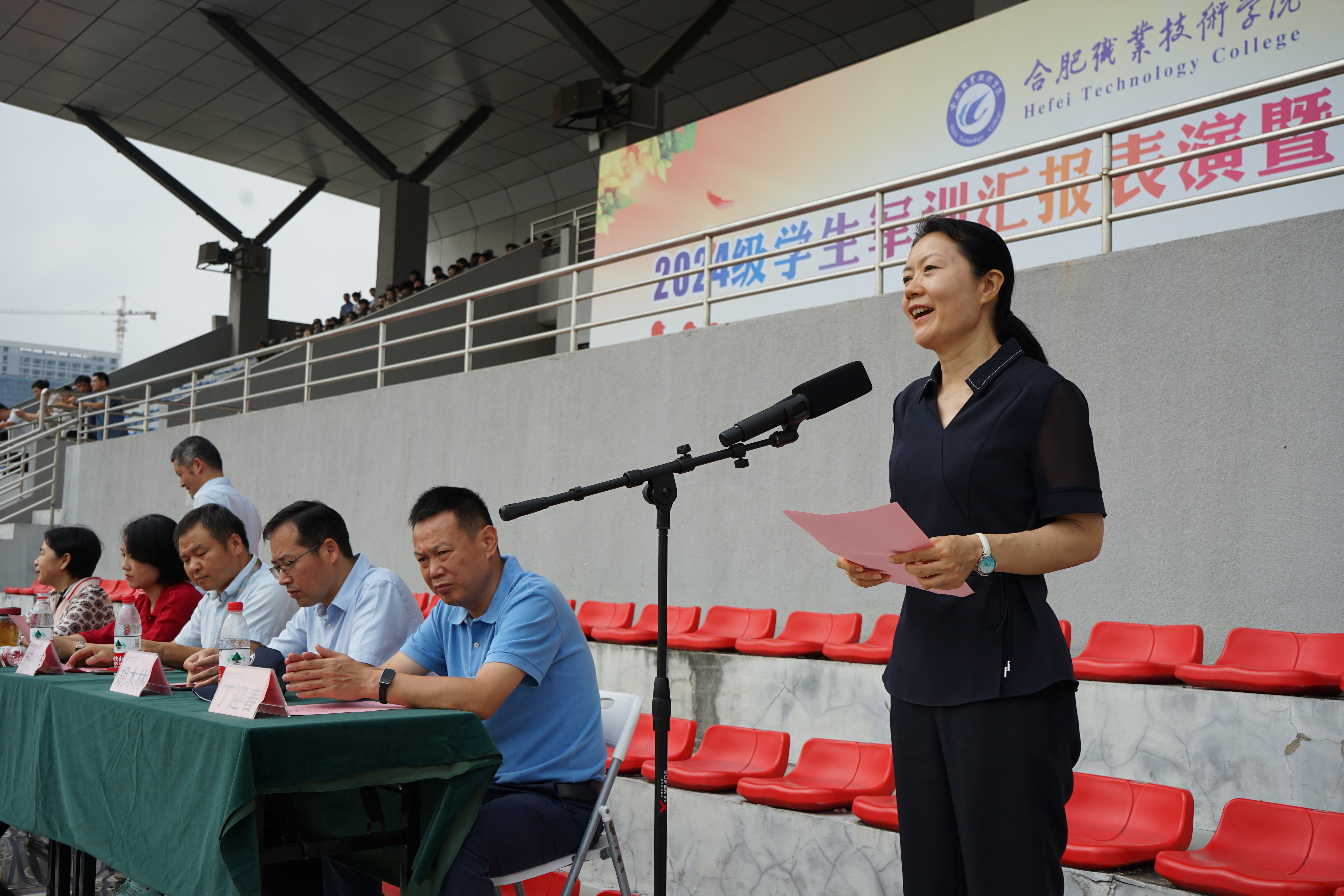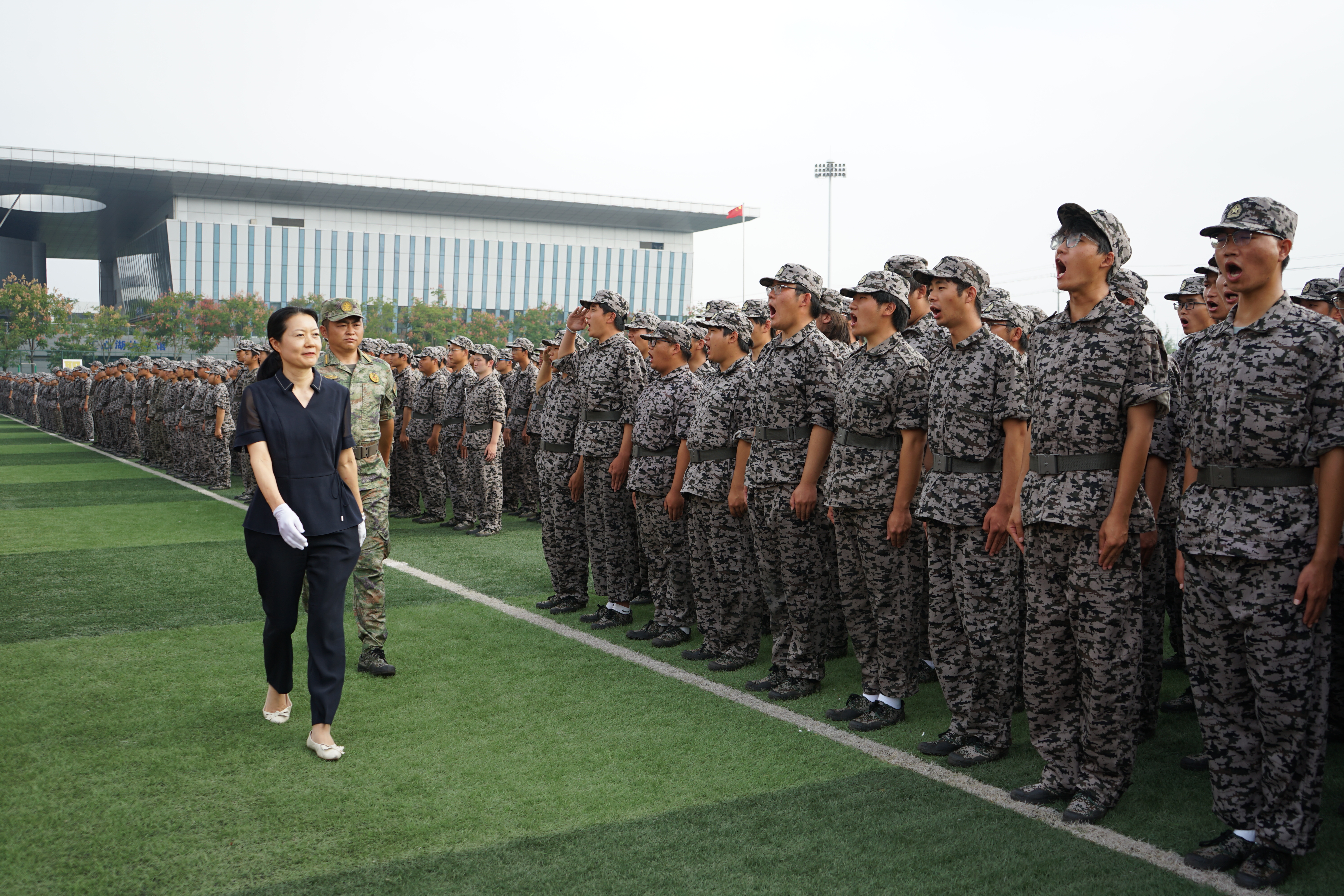 王杰才、金飞燕在总结讲话中首先代表学校向不辞辛苦的全体教官表示感谢,对同学们所取得的优异成绩表示祝贺。校领导指出,两周的军训生活,同学们头顶烈日、顽强拼搏,充分展现了新时代青年学子有理想、敢担当、能吃苦、肯奋斗的精神风貌,为“大学第一课”交上了一份满分的答卷。就接下来的大学生活,对新生提出了三点期望:要继续保持吃苦耐劳的优良作风,要努力涵养勤学善思的进取品格,要始终厚植技能报国的爱国情怀。