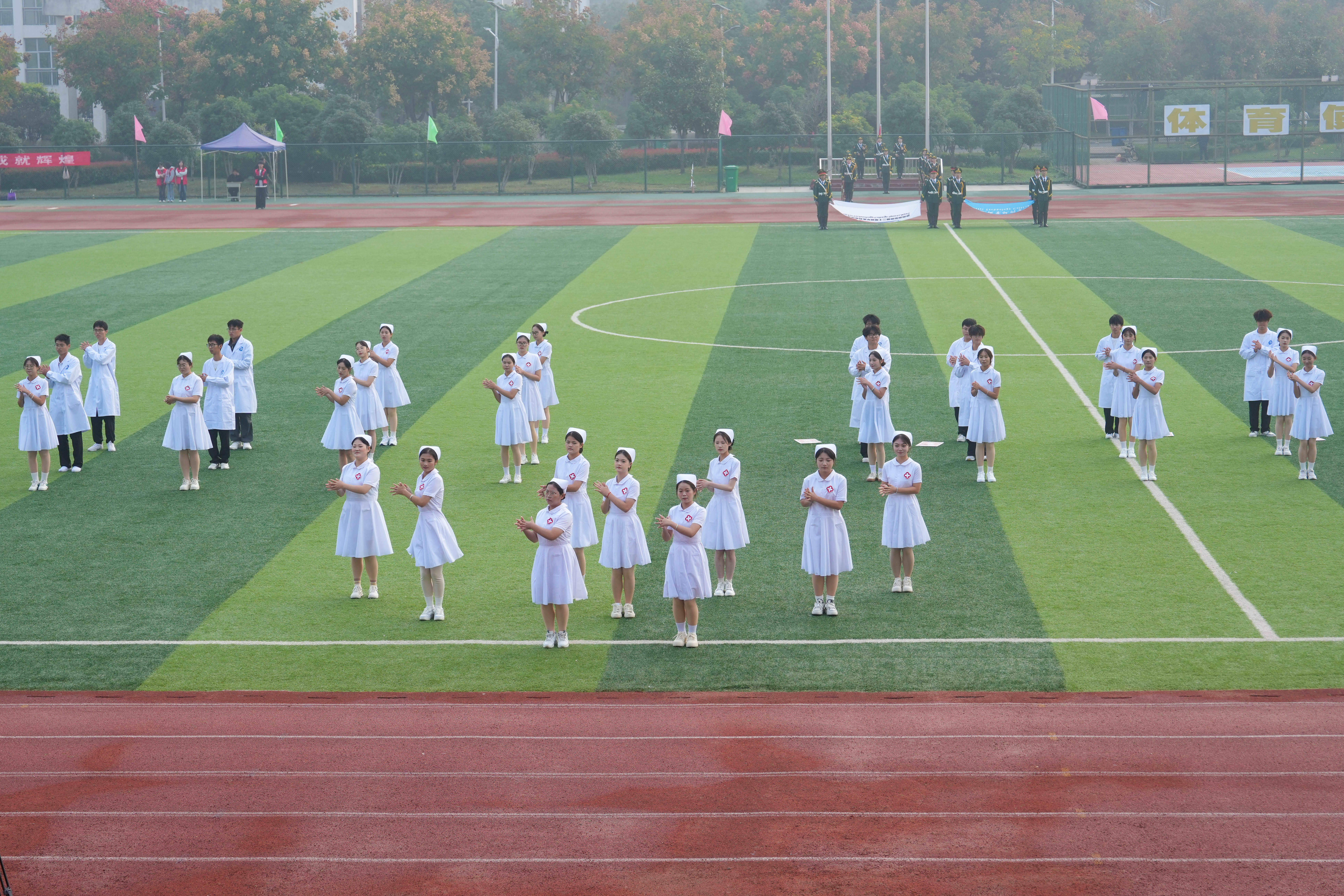 金飞燕致辞。她指出,学校坚持贯彻习近平总书记关于体育的重要论述精神,始终秉承“以学生为本”的理念,坚持把“健康第一,终身体育”作为体育工作的目标,不断推进体育俱乐部建设,加快推进体育评价改革,通过举办丰富多彩的体育活动,营造了浓厚的校园体育文化氛围。同时,运动会也为教职工提供了一个展示自我、增进友谊、锻炼身体、激发斗志的舞台。希望全体运动员以顽强拼搏、自强不息的必胜信念,团结协作、并肩作战的宝贵品质,投入到本次运动会中去,赛出风格、赛出水平、赛出友谊,充分展现合职学子和中国青年一代自信乐观、热情友好的阳光气质。希望全体裁判员、教练员和工作人员恪尽职守,以高度的责任心、热情的服务和无私的奉献,优质高效地完成各项工作,确保运动会的顺利进行。最后,她预祝本次运动会圆满成功,祝愿大家在比赛中都能取得优异成绩!