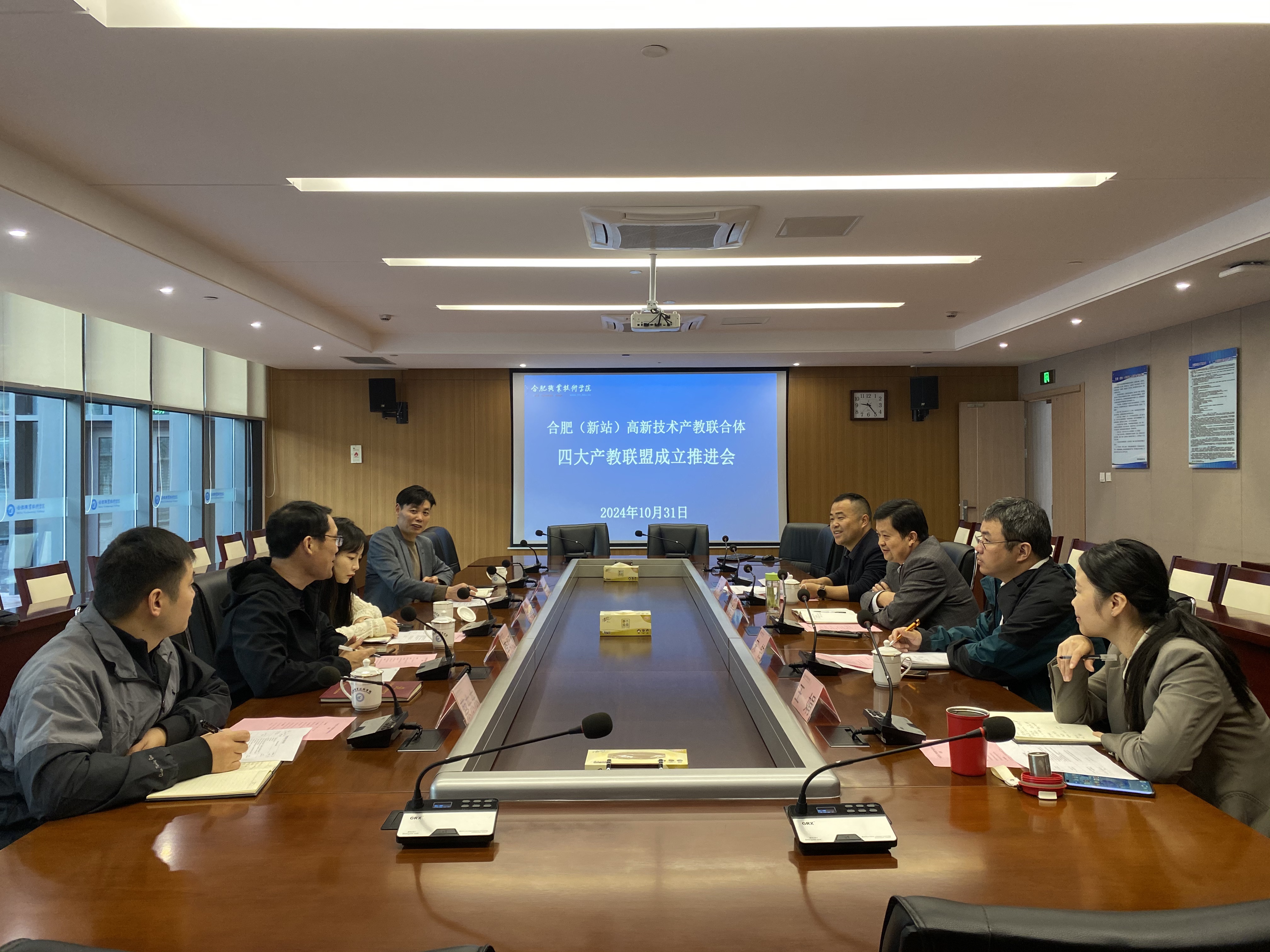 10月31日上午,合肥(新站)高新技术产教联合体四大产教联盟成立推进会在我校汇心湖校区525会议室召开。市教育局职成处处长李邦灯、新站高新区社会发展局教育发展中心主任王辉贤以及我校教务处、科技处等相关人员出席会议。推进会由教务处副处长(主持工作)胥振国主持。