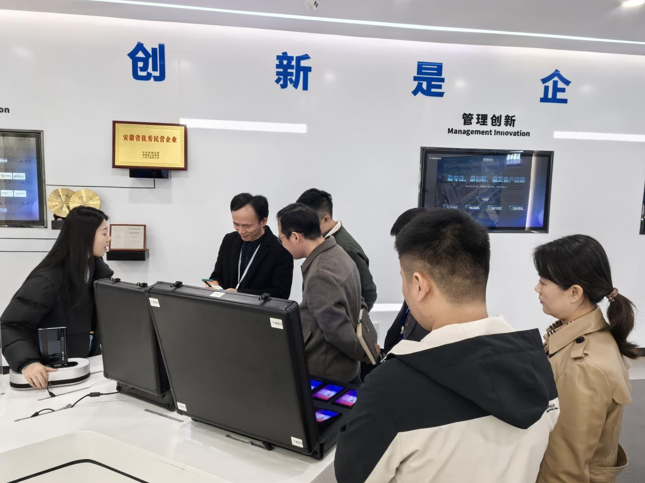 为贯彻落实教育部、省教育厅关于“访企拓岗”促就业专项行动工作部署,深入了解毕业生就业与学生岗位实习情况,稳步推进合肥新型显示与集成电路产教联盟成立等有关事宜,11月26日上午,校党委副书记、校长檀明带队赴合肥维信诺电子有限公司开展访企拓岗与实习检查工作,随行人员包括校科技处处长宋铂、教务处副处长张青,机电工程学院院长胡木林,副院长高敏以及教学办相关人员。合肥维信诺电子有限公司总经理助理牛梭,人力资源部经理郭旺、模组设备部经理刘桂强、模组制造部经理杨兆兴、设备专班负责人高贺,人力资源部招聘经理常腾飞等企业代表热情接待了檀明一行。