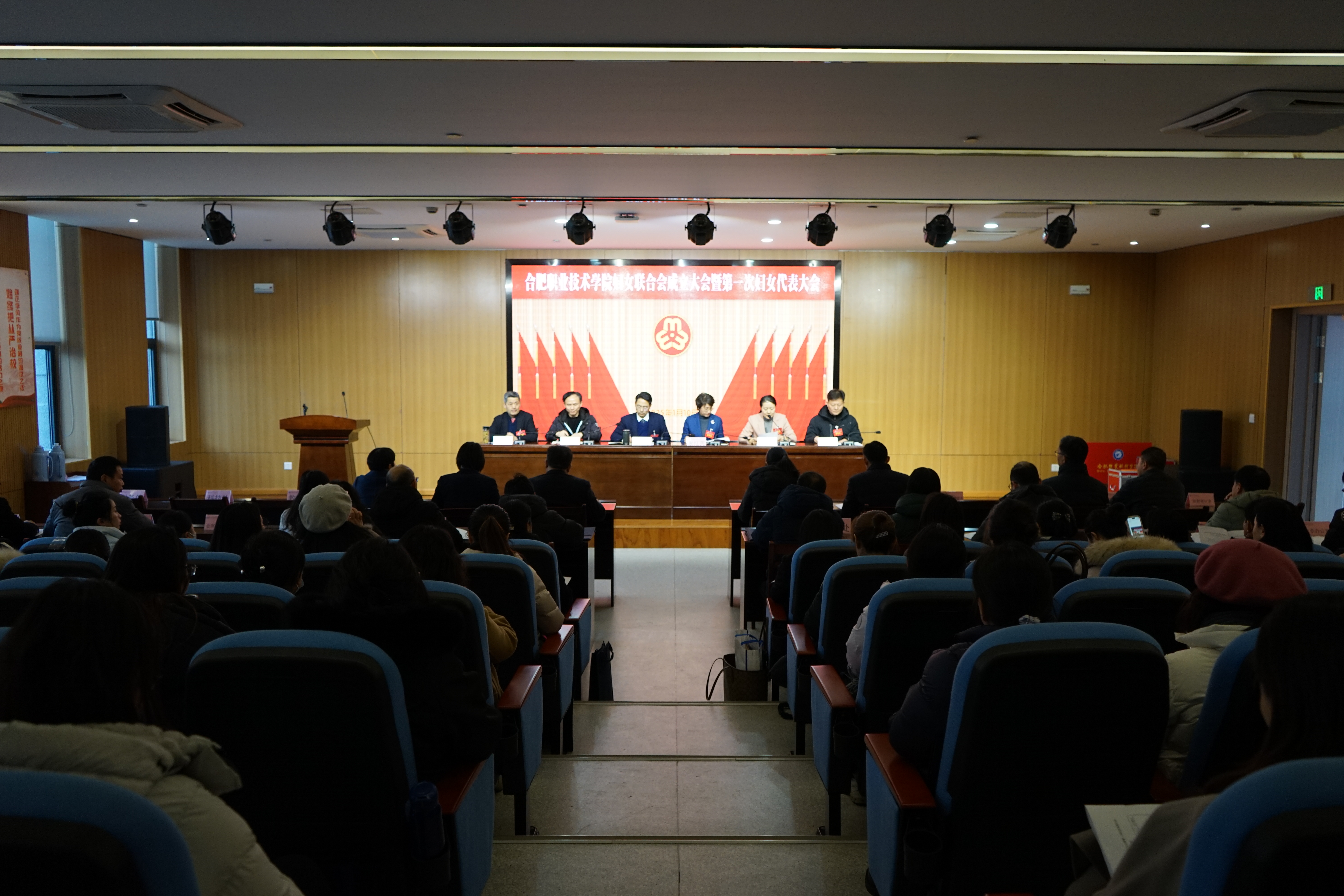 1月10 日下午,合肥888集团学院妇女联合会成立大会暨第一次妇女代表大会在图书馆一楼报告厅召开。市妇联党组书记、主席束红英,校党委书记王杰才,党委副书记、校长檀明,校党委副书记金飞燕及校领导班子成员出席大会。学校各职能部门、各二级党组织负责人以及60名妇女代表参会。大会由金飞燕主持。