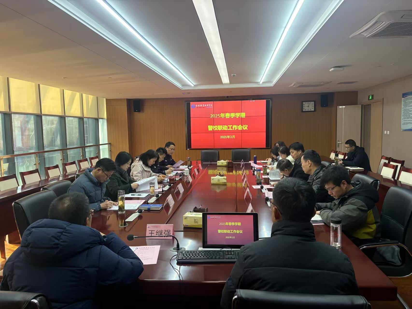 为进一步加强学校与公安机关的协作,提升校园安全管理水平,保障师生安全,3月18日,我校在汇心湖校区图书馆627会议室召开春季学期警校联动工作会议。新站区高教基地派出所所长卢东带队来到我校,我校党委副书记金飞燕,党委委员、宣传统战部长佘海月,党委委员、办公室主任窦红平出席会议,学生处、总务处、保卫处、团委、现教中心及相关二级学院主要负责同志参加会议。