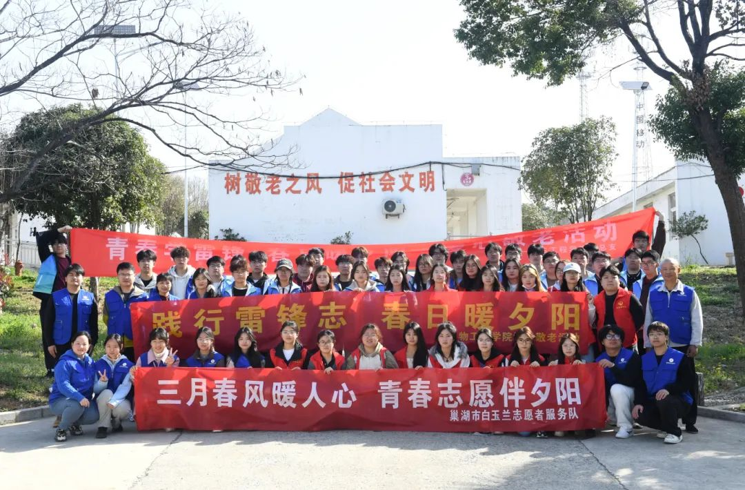 崇德扬善,爱心传递。三月春风里,我校学子以“崇德扬善”精神为指引,将雷锋精神化作润泽银发与童真的暖流,15个学生社团联动社区与养老机构累计开展活动12场,涵盖环境美化、健康关怀、精神陪伴等多维度服务,为300余名老人及儿童编织春日温情。建筑工程学院社团在向阳社区实施环境清洁、晾晒衣物、陪伴聊天等服务,为老人们送去了温暖和快乐。生物工程学院联合汽车工程学院、巢湖“白玉兰”志愿服务团队为巢湖市散兵镇敬老院老人,通过红歌演出展示对老一辈人的关爱与敬意。阳光运动社足球小组联合青年志愿者联合会则以绿茵场为纽带,通过趣味教学、友谊赛等形式,引导30名儿童在运动中完成团队信任建设,向社区儿童传递运动热情与爱心。