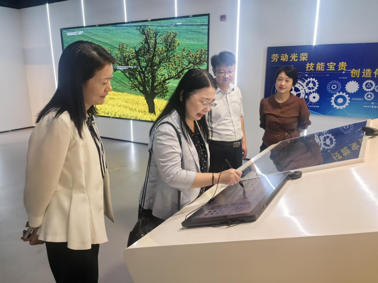 会前,金飞燕陪同来宾一行参观了我校“职业教育与合职发展”展览馆(校史馆),双方在参观过程中对职业教育发展以及场馆育人做了讨论交流。