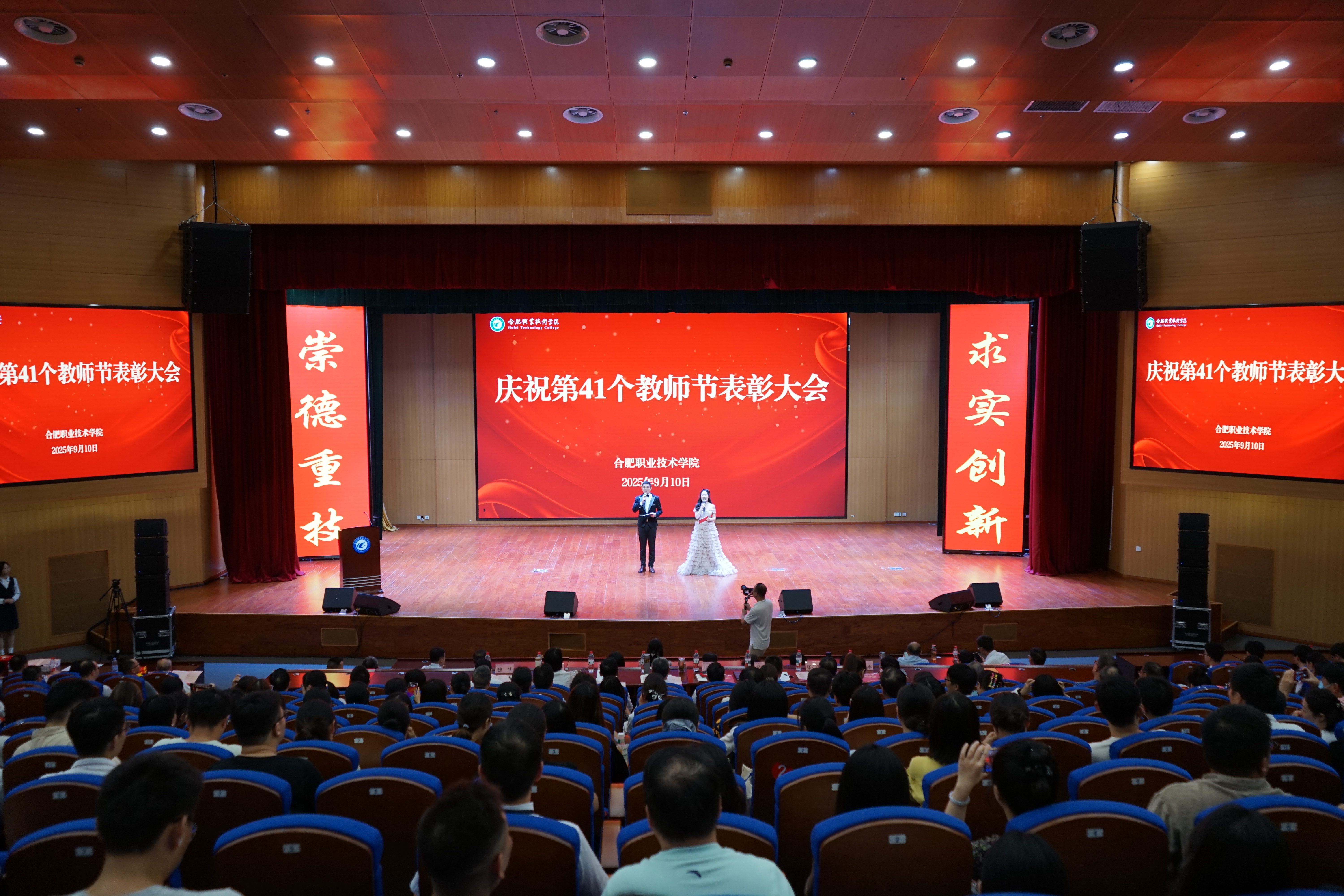 为庆祝第41个教师节,9月10日下午,我校举办了教师节表彰大会。会议主题为“以教育家精神铸魂强师,谱写教育强国建设华章”,全体教师及教职工代表齐聚一堂,共同见证这一庄重而温馨的时刻。