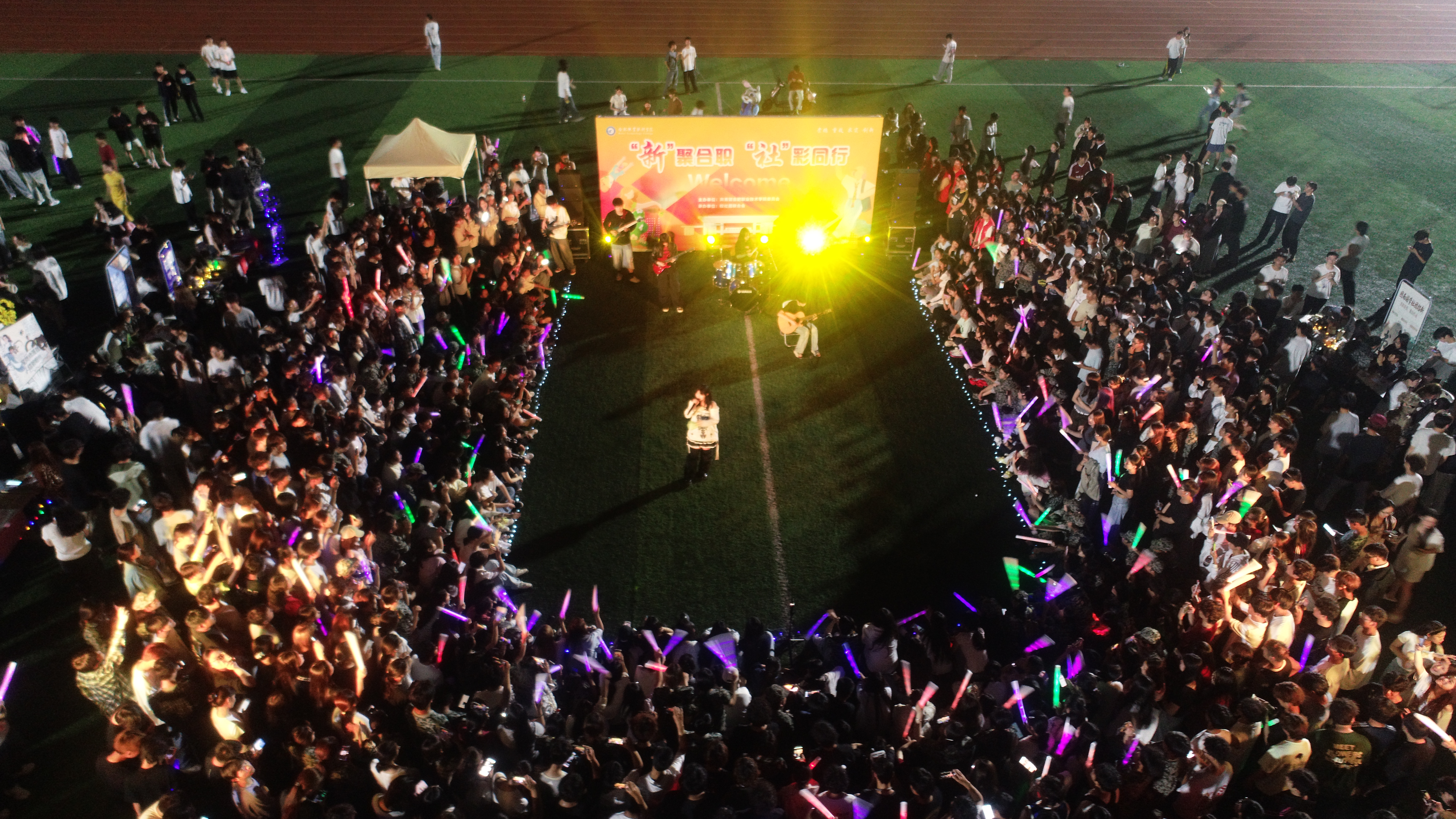 秋夜清风拂校园,璀璨星光映青春。9月26日晚,由校团委主办、校社团联合会倾力承办的2025年社团招新暨文艺汇演,在鼓山校区与汇心湖校区田径场同步启幕。近百个学生社团与学生组织齐聚现场,覆盖思想政治、文化体育、志愿公益、创新创业等多个类别,一场兼具活力与创意的社团盛宴,吸引两校区师生纷纷驻足参与,为初秋校园注入蓬勃生机。