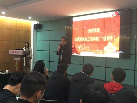 为提高学生对实践的认知水平,激发学生学习热情,2018年10月20-21日,机电工程学院17级 200多名学生在副院长胡木林及相关老师的带领下,赴安徽中显智能机器人有限公司进行了为期两天的参观学习。中显智能机器人有限公司总裁吴春庚和中显教育副总经理徐英祥、人事行政部经理荚长慧等陪同参观见习。