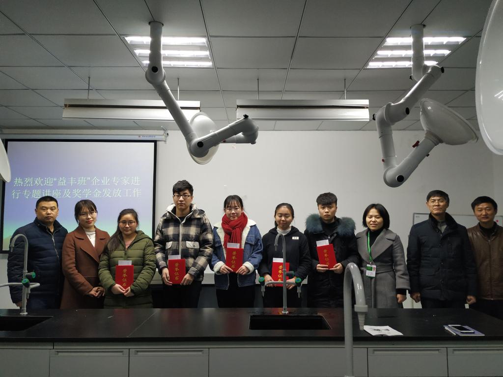 2018年11月27日-28日下午在图书馆一楼第二学术报告厅,合肥百姓缘大药房连锁有限公司培训部部长张持浩、人力资源部部长盛雅玲,上海益丰大药房营销部负责人葛进、人力资源部负责人齐先华,生物工程学院院长裴正峰、副院长刘修树及订单班主要负责人分别进行“店长储备人才班”和 “益丰班”组建工作、奖学金颁奖、专题讲座内容遴选等工作。两家单位高度重视此事,均派出公司领导宣讲企业文化、公司经营理念、实习生实习带教、后期成长发展前景等内容。我校16级实习生代表现场交流自实习开始以来的实习学习、实习环境、实习生活心得体会。