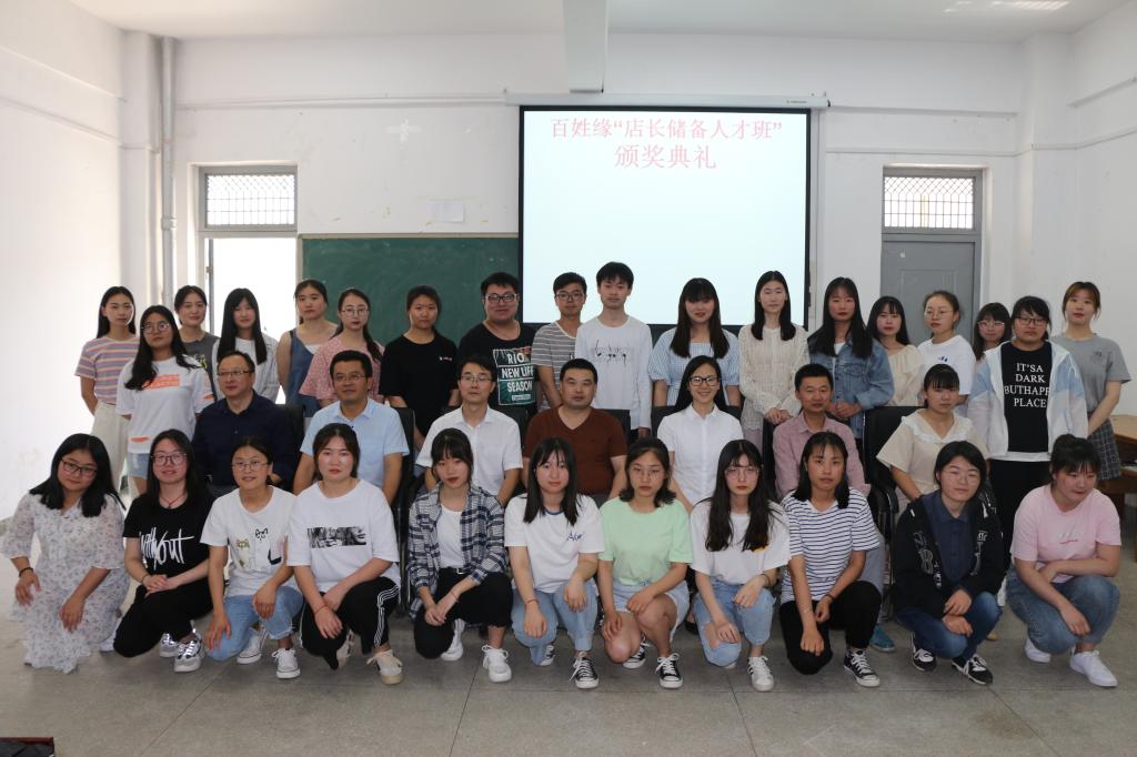 为了进一步推动人才培养改革,利用校企双方优势资源,落实校企合作协议,生物工程学院与知名企业安徽百姓缘大药房连锁有限公司于2018年合作首届“店长储备人才班”,人才培养方案引入企业文化、职业素养、岗位技能等企业元素,实现学生从入学到实习就业一体化的订单培养模式。日前,在生化楼A305多功能教室,安徽百姓缘大药房连锁有限公司培训部部长张持浩、人力资源部部长盛雅玲,生物工程学院副院长刘修树及订单班主要负责人共同进行“店长储备人才班”奖学金颁奖、专题讲座等工作。