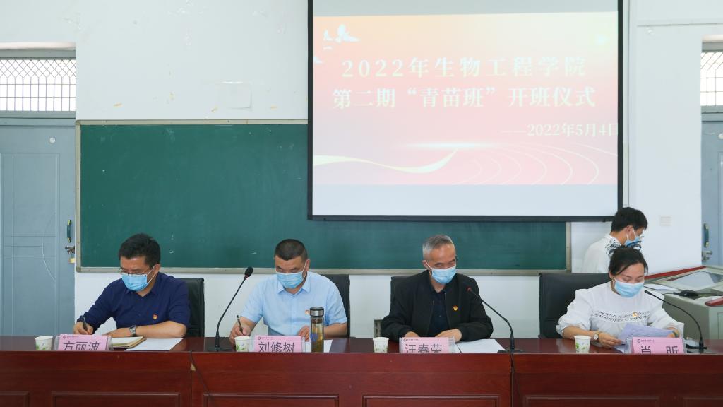 为了深入学习贯彻习近平新时代中国特色社会主义思想和党的十九大及十九届历次全会精神,深入推进“青年马克思主义培养工程”在生物工程学院的实施,5月4日下午,生物工程学院在生化楼A305举行第二期“青苗班”开班仪式。生物工程学院党总支书记汪春荣、副院长刘修树(主持工作)、副院长方丽波、全体专职辅导员及“青苗班”全体学员出席本次典礼。开班仪式由团总支书记肖昕主持。