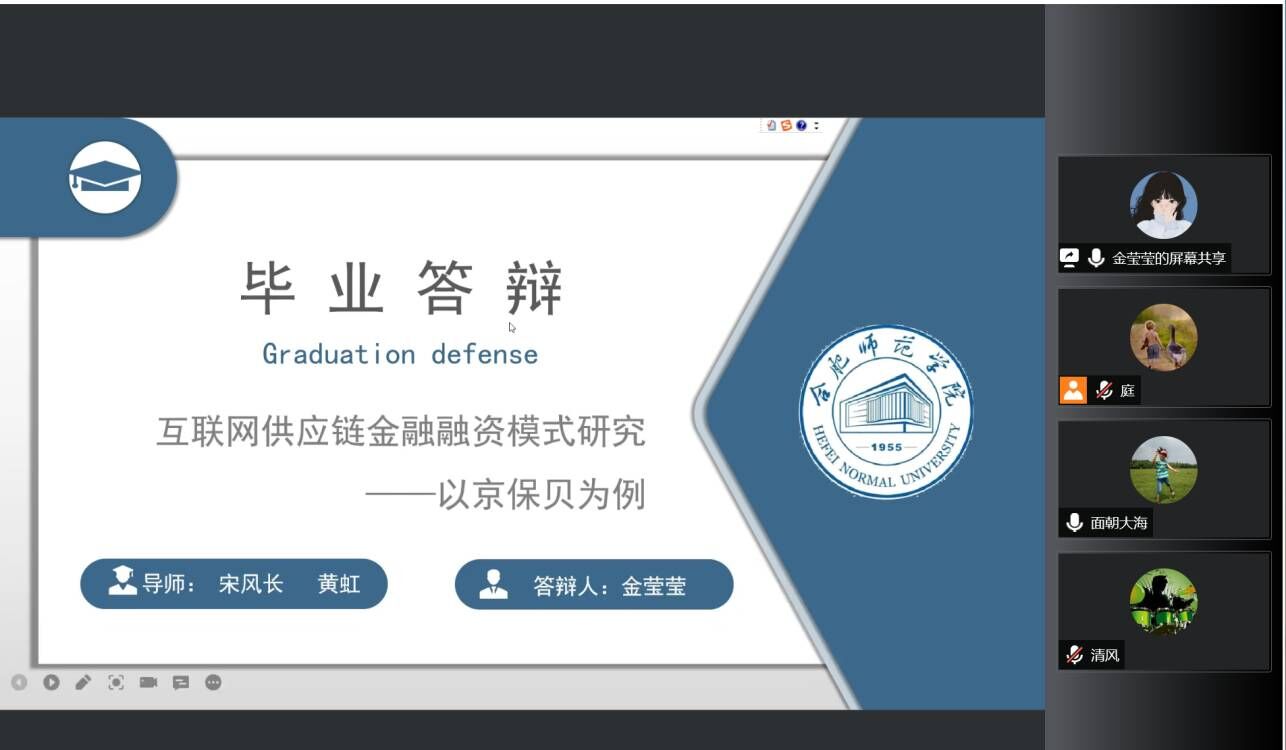 毕业论文答辩是学生对本科阶段学习成果的总结,也是对我校经济与金融专业人才培养的一次综合展示。为确保线上答辩质量,经贸旅游学院多次召开专题会议研究布置答辩工作,制定了线上答辩参考流程,在组织方式、技术指导、资料收集存档、应急预案等方面作了详细安排,并提前组织学生和答辩专家进行了模拟答辩。(供稿:经贸旅游学院 编辑:杨璨)