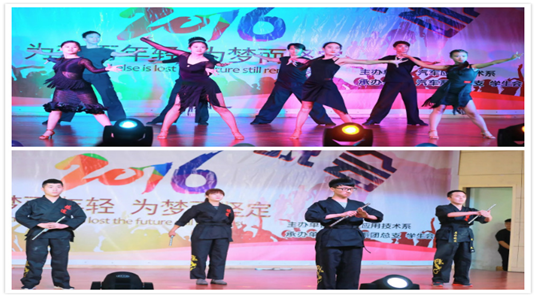 晚会节目形式多样,内容精彩。有青春活力的拉丁舞、欧美爵士舞,有退伍大学生展现军人情怀的萨克斯演奏《时间去哪了》,还有汽车系的品牌节目《武术》和《模特秀》,模特的精彩走秀展现当代大学生的青春靓丽风采;九节鞭、双节棍、硬气功等精彩表演让观众现场惊叹不止,更难得可贵的是一名双节棍演员在表演中不小心受伤流血,可他仍坚持完成演出,展现了当代大学生坚持不懈的韧性和责任心,这份精神感染了全场观众,全体为他加油鼓掌致敬。(供稿:汽车系  编辑:敬涓)