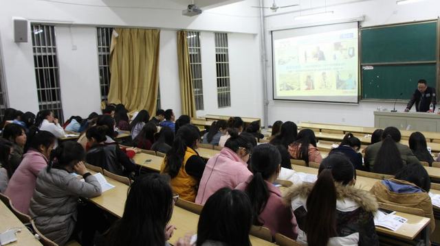 3月16日晚上7:00,在教学楼B一阶梯教室,生物系举办了“校企合作专家进校园”学术讲座——“临床医学检验技术进展与就业前景分析”。讲座由医学检验技术专业校企合作单位——合肥艾迪康临床检验中心主任杨玉坤主讲,2014级医学检验技术专业学生及部分专业教师近200名师生参加了讲座。