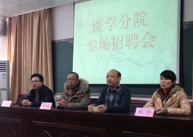 1月29日,浙江武义县人事局、卫生局及武义县妇幼保健院等单位相关负责人一行7人冒着大雪来到我校,进行2015届助产专业毕业生专场招聘,提供4个编制岗位和若干个协议护士岗位。此次招聘会由医学分院承办,经过前期半个月的宣传与组织,30日上午20位学生来到招聘现场。
