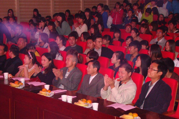 10月25日晚,院大学生活动中心座无虚席。汽车系举办迎2013级新生文艺晚会,汽车系党总支书记汪春荣、主任程师苏、副主任解云,专兼职辅导员,部分教师和500多名观众观看了晚会。