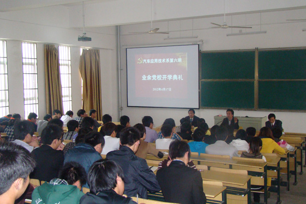 4月17日下午,汽车系在教学楼A楼一楼阶梯教室举行了简朴而隆重的第六期学生业余党校培训班开学典礼仪式。汽车系主要负责同志和培训班110多名学员参加开学典礼。