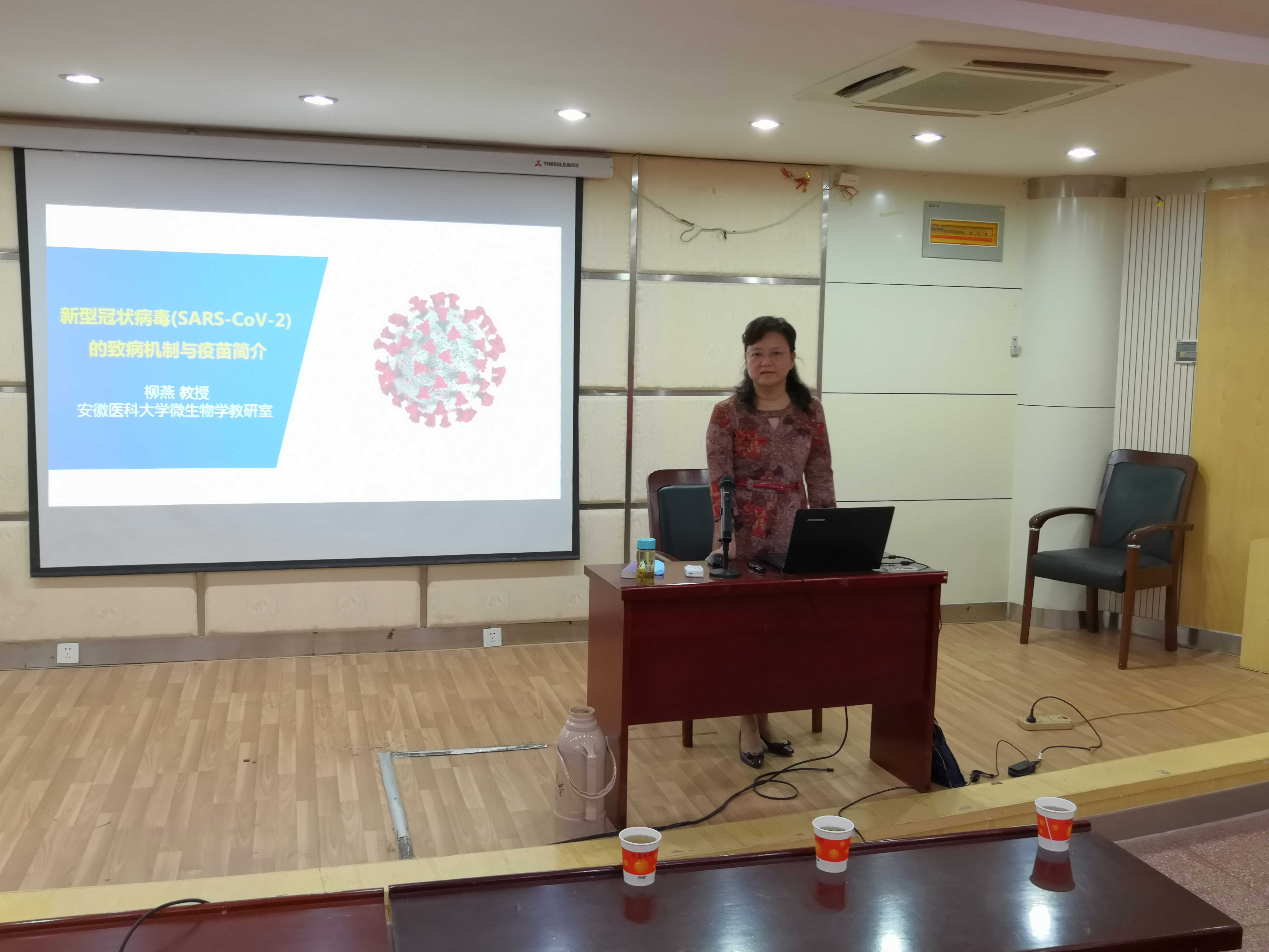 柳燕教授分别从冠状病毒的分类,SARS-CoV-2的形态、结构、基因组、结构蛋白、非结构蛋白、主要受体ACE2、复制周期和感染宿主细胞等病原学特征、SARS-CoV-2的特异性免疫、致病机制、不同抗体检测变化趋势、治疗策略等以及我国SARS-CoV-2疫苗研制进展等方面给师生进行了介绍。