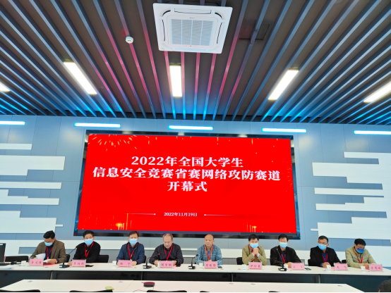 11月19日,由安徽省教育厅主办,合肥工业大学、合肥888集团学院、合肥学院承办的2022 年全国大学生信息安全竞赛安徽省赛网络攻防赛,在我校网络安全实训中心成功举办。本次竞赛共有来自全省 46 所学校(本科类院校 24 所,高职院校 19 所,另有 3 所中职类院校特邀参赛)的 301 支队伍报名,经网上初选,评出 186 支队伍(其中本科 102 支,高职 77 支,中职 7 支)参加决赛。决赛开始前,举行了简短而热烈的开幕式。全国大学生信息安全竞赛安徽省赛区组委会秘书长胡学钢、我校副校长周晓隆、纪委书记陶宁、信息工程与传媒学院院长章炳林等出席开幕式。周晓隆简短致辞后,胡学钢对本次比赛的背景、意义和目标作了介绍,并鼓励参赛的选手们通过此次比赛提升自己的网络安全技战术水平,在比赛中获得佳绩。